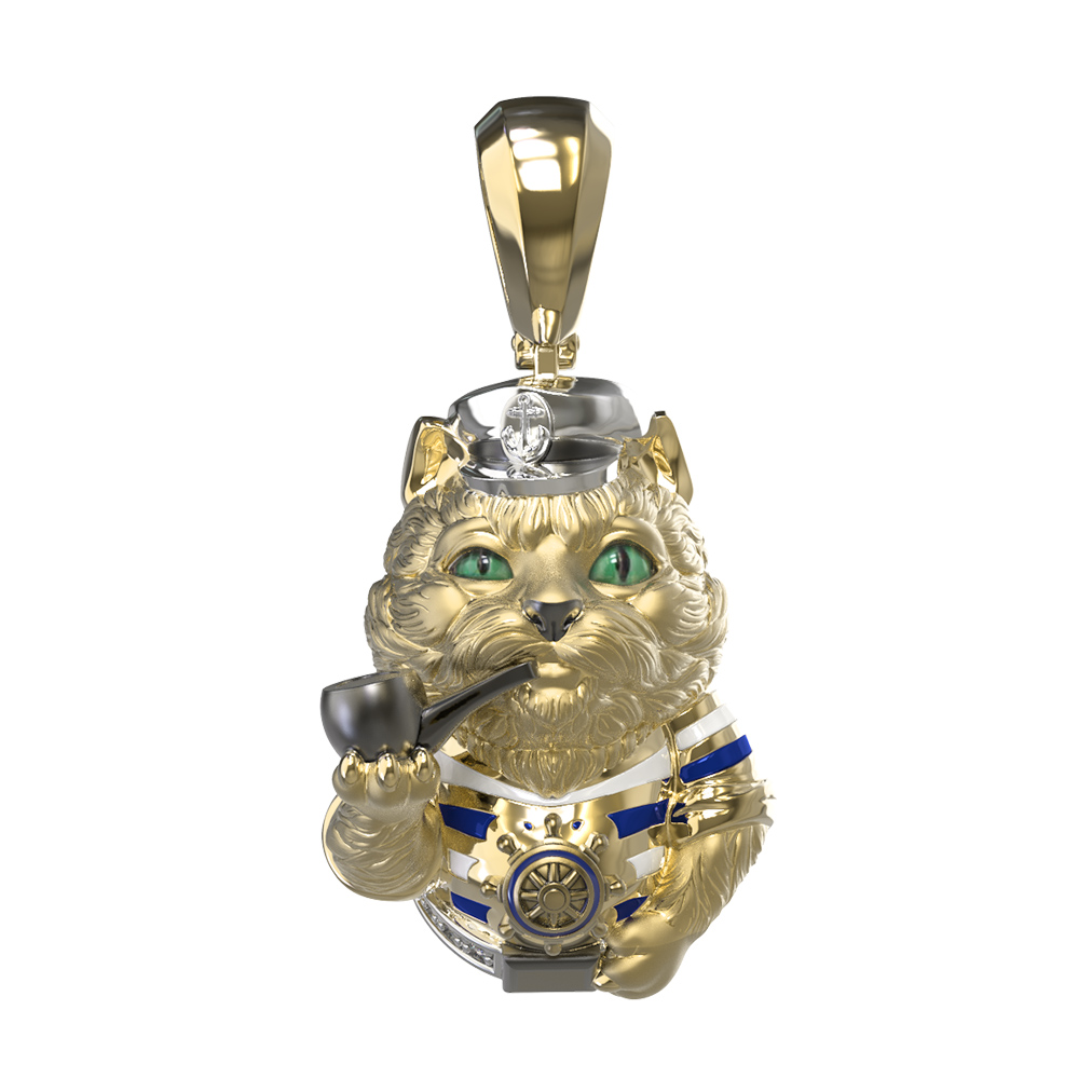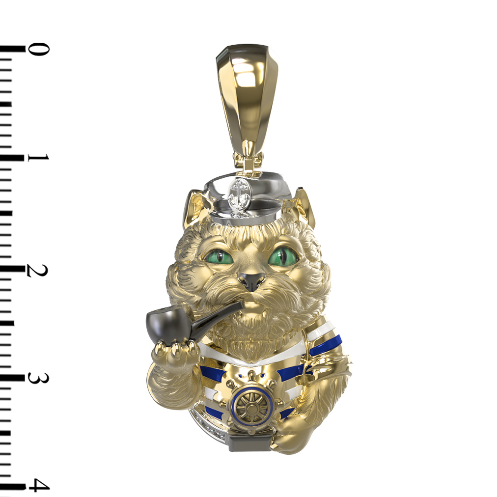 Подвеска из лимонного золота c эмалью, бриллиантами и рубином