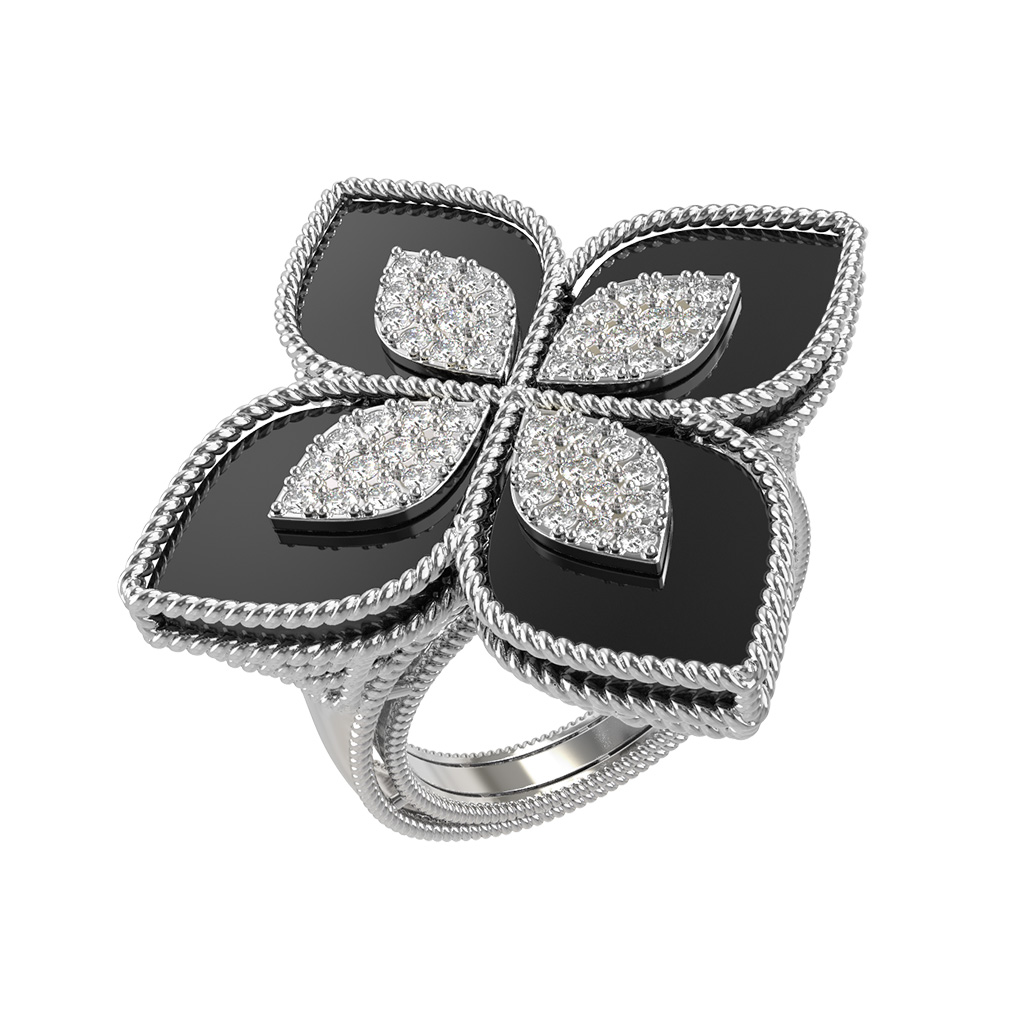 Кольцо из белого золота c бриллиантами и ониксом