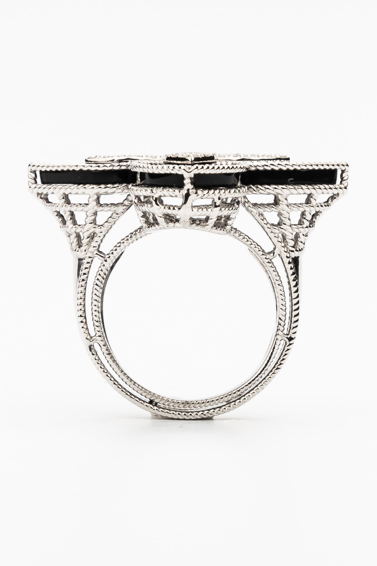 Кольцо из белого золота c бриллиантами и ониксом