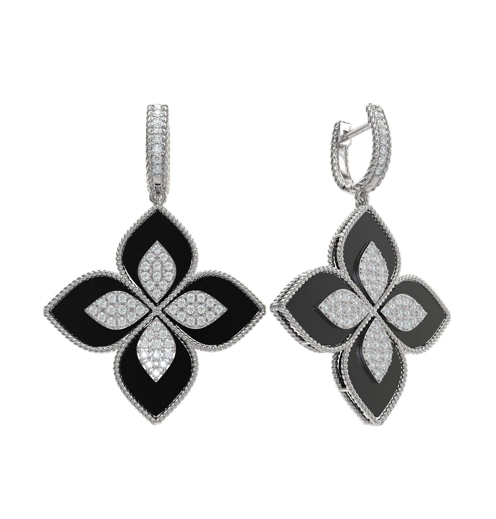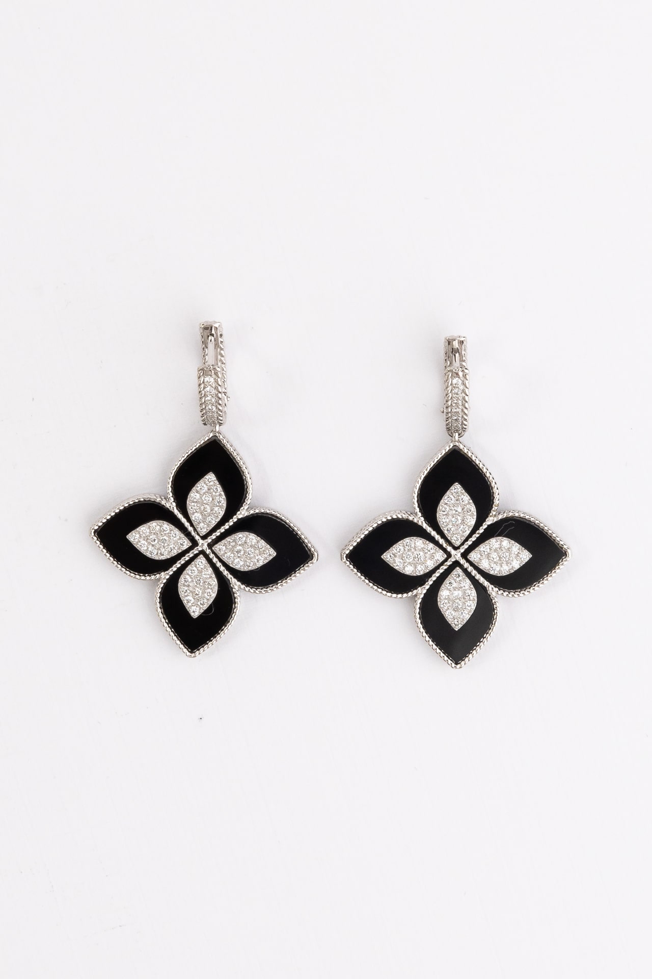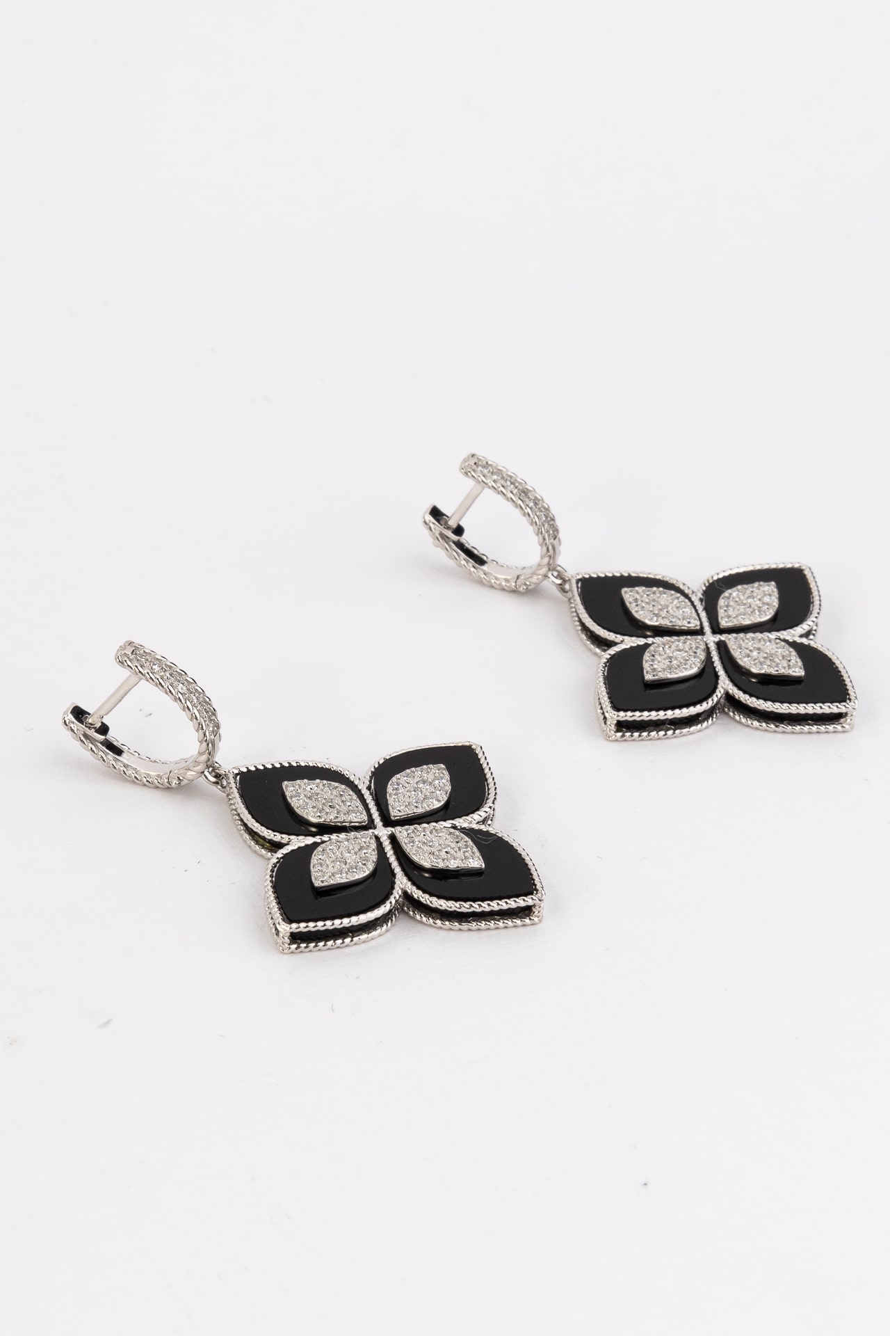 Серьги из белого золота c бриллиантами и ониксом