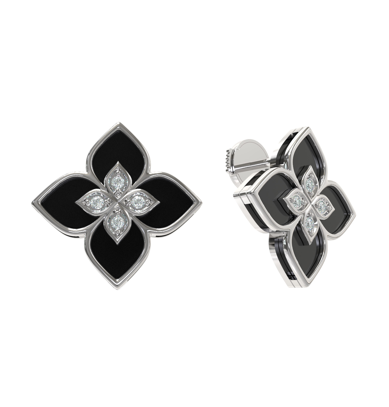 Серьги из белого золота c бриллиантами и ониксом
