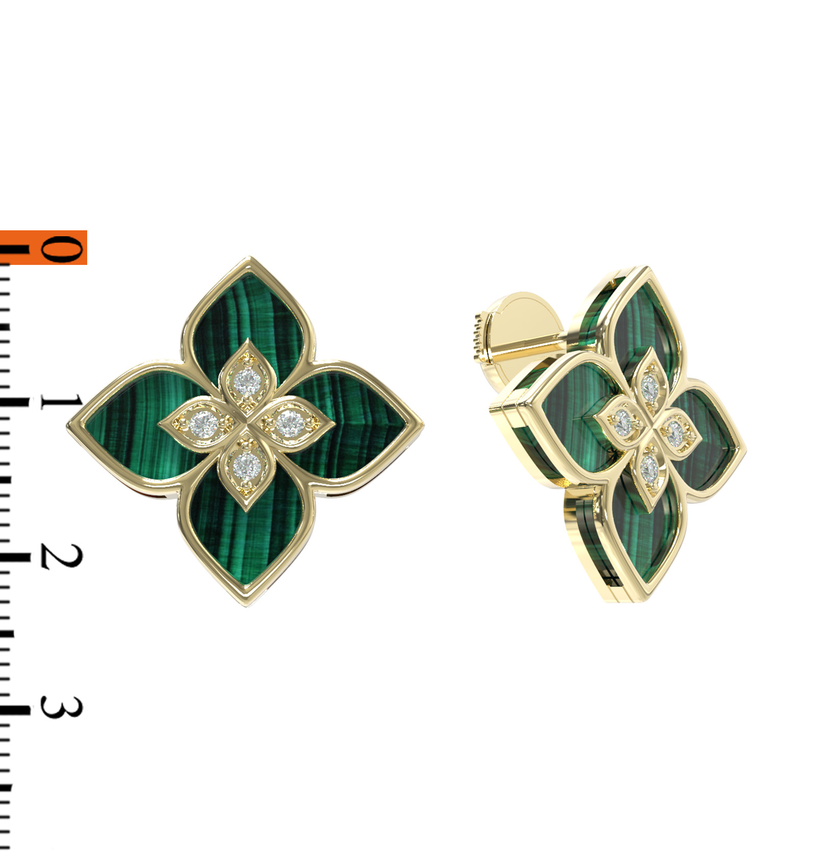 Серьги из лимонного золота c бриллиантами и малахитом
