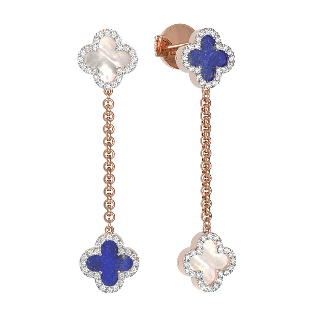 Серьги из золота c бриллиантами, лазуритом и перламутром