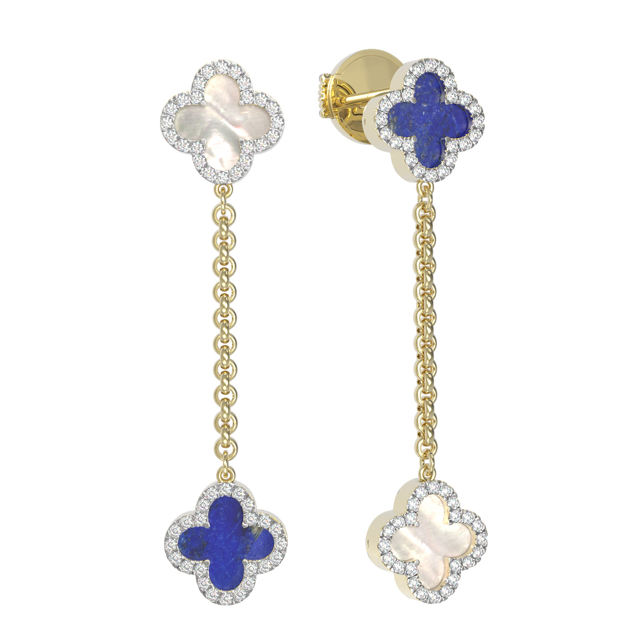 Серьги из лимонного золота c бриллиантами, лазуритом и перламутром