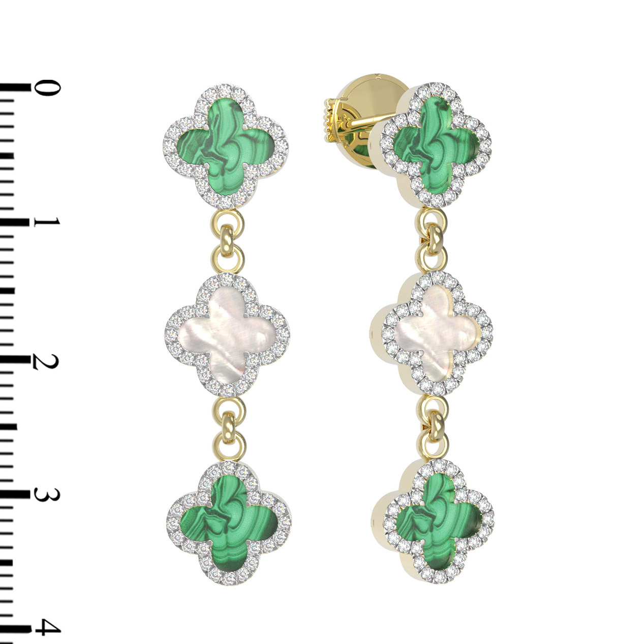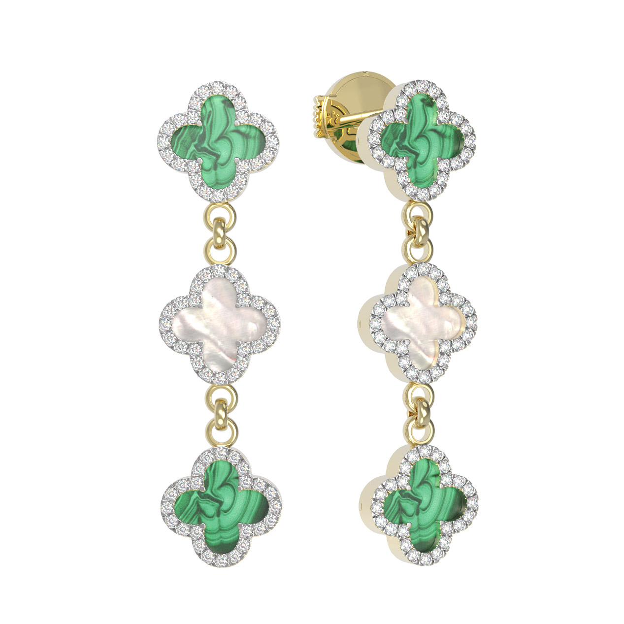 Серьги из лимонного золота c бриллиантами, малахитом и перламутром