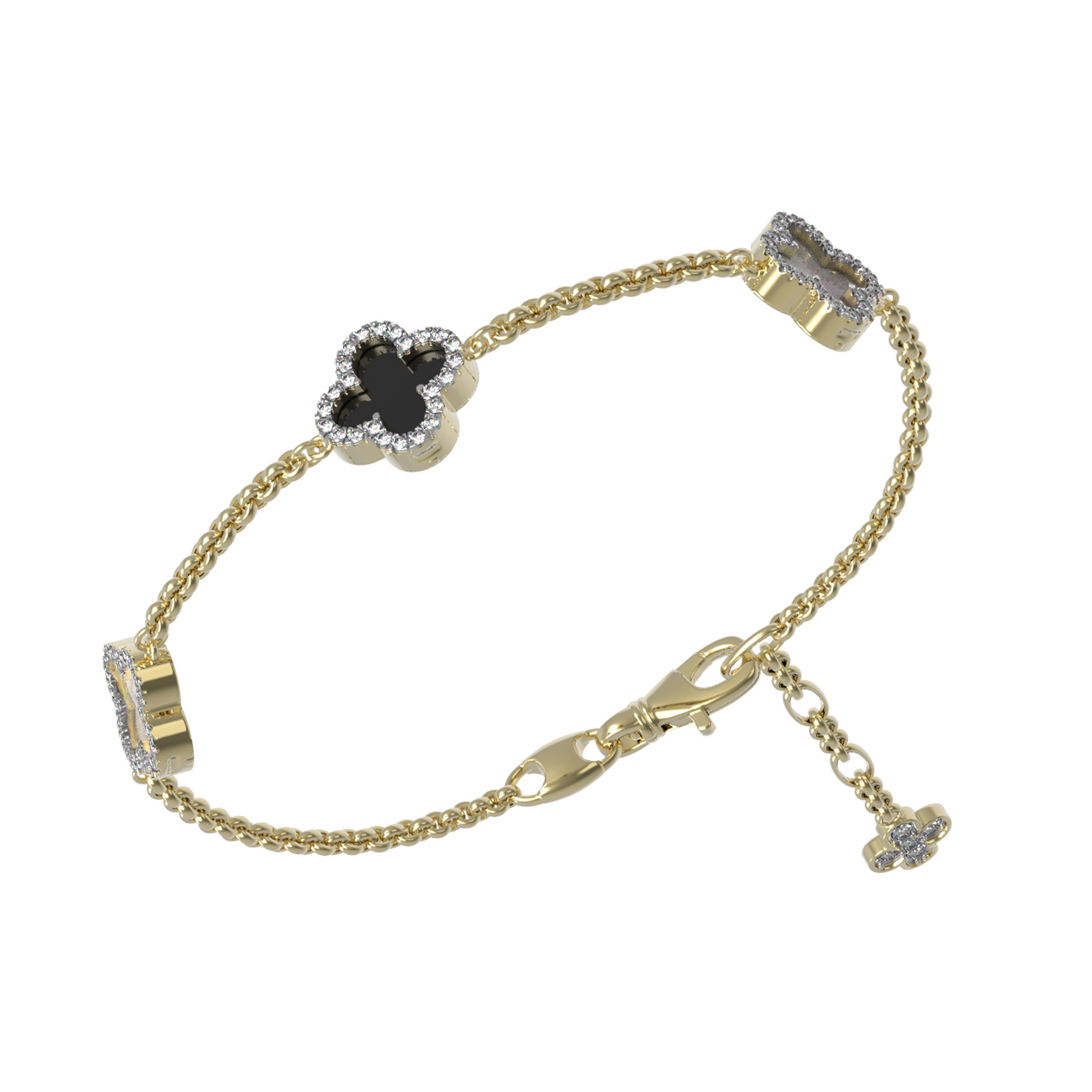Браслет из лимонного золота c бриллиантами, ониксом и перламутром