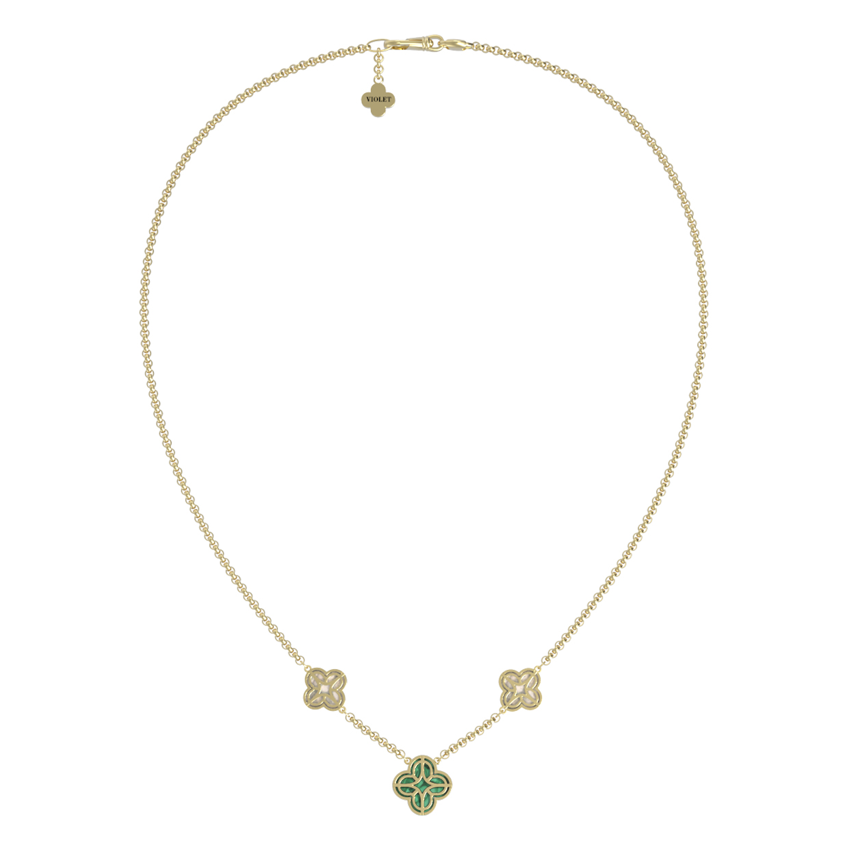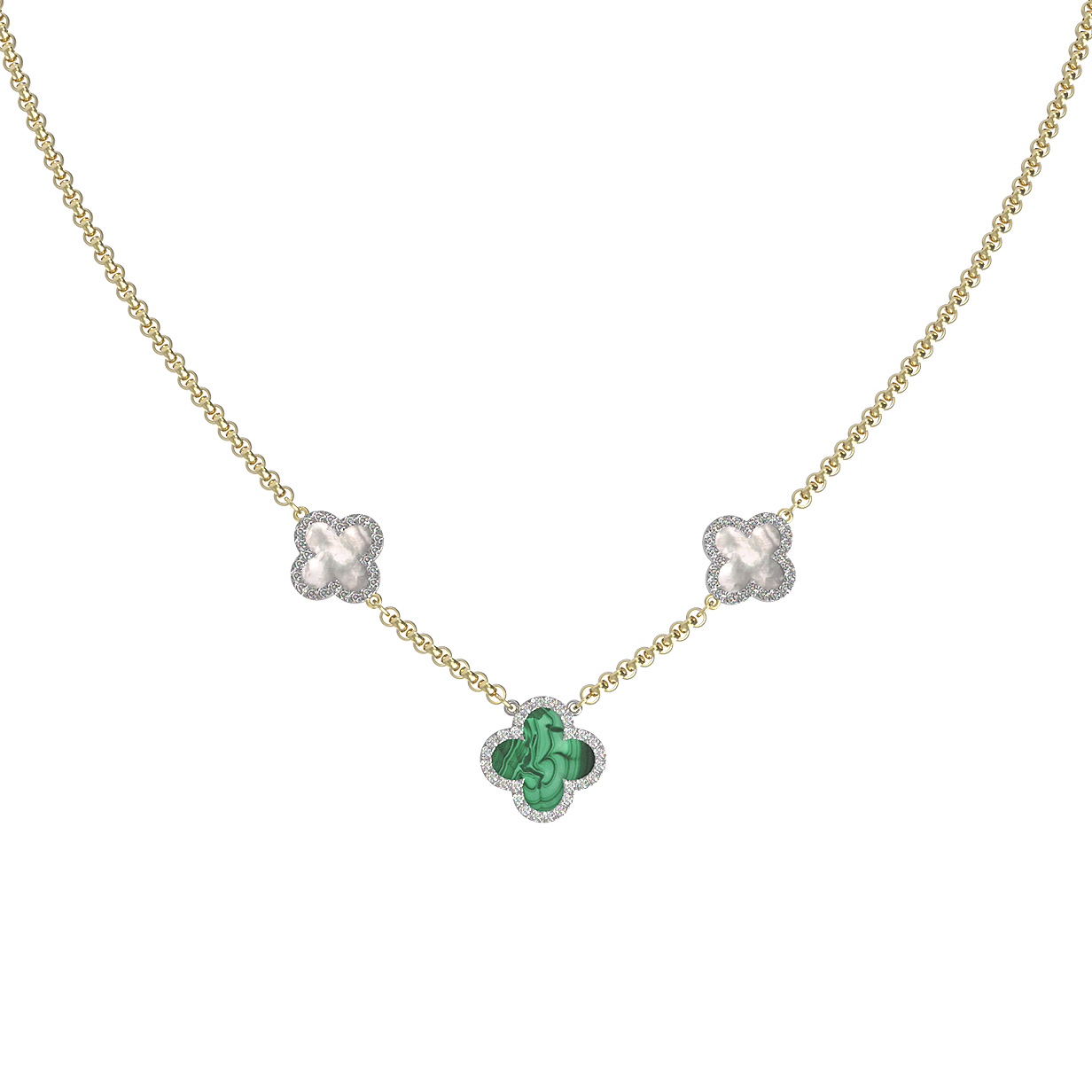 Колье из лимонного золота c бриллиантами, малахитом и перламутром