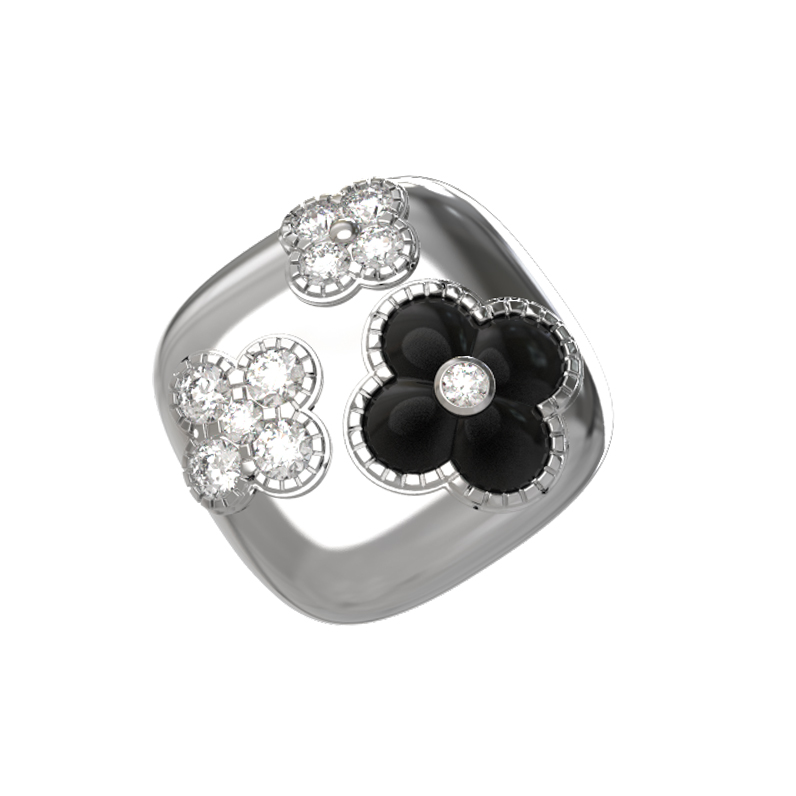 Кольцо из белого золота c бриллиантами и ониксом