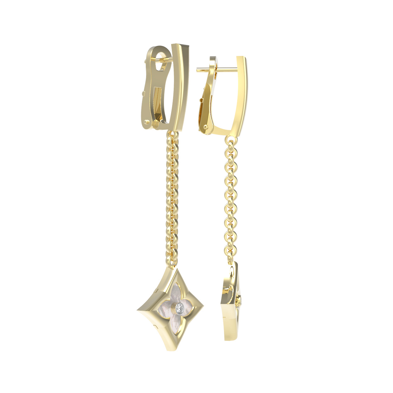 Серьги из лимонного золота c бриллиантами и перламутром