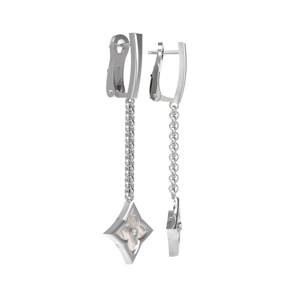 Серьги из белого золота c бриллиантами и перламутром