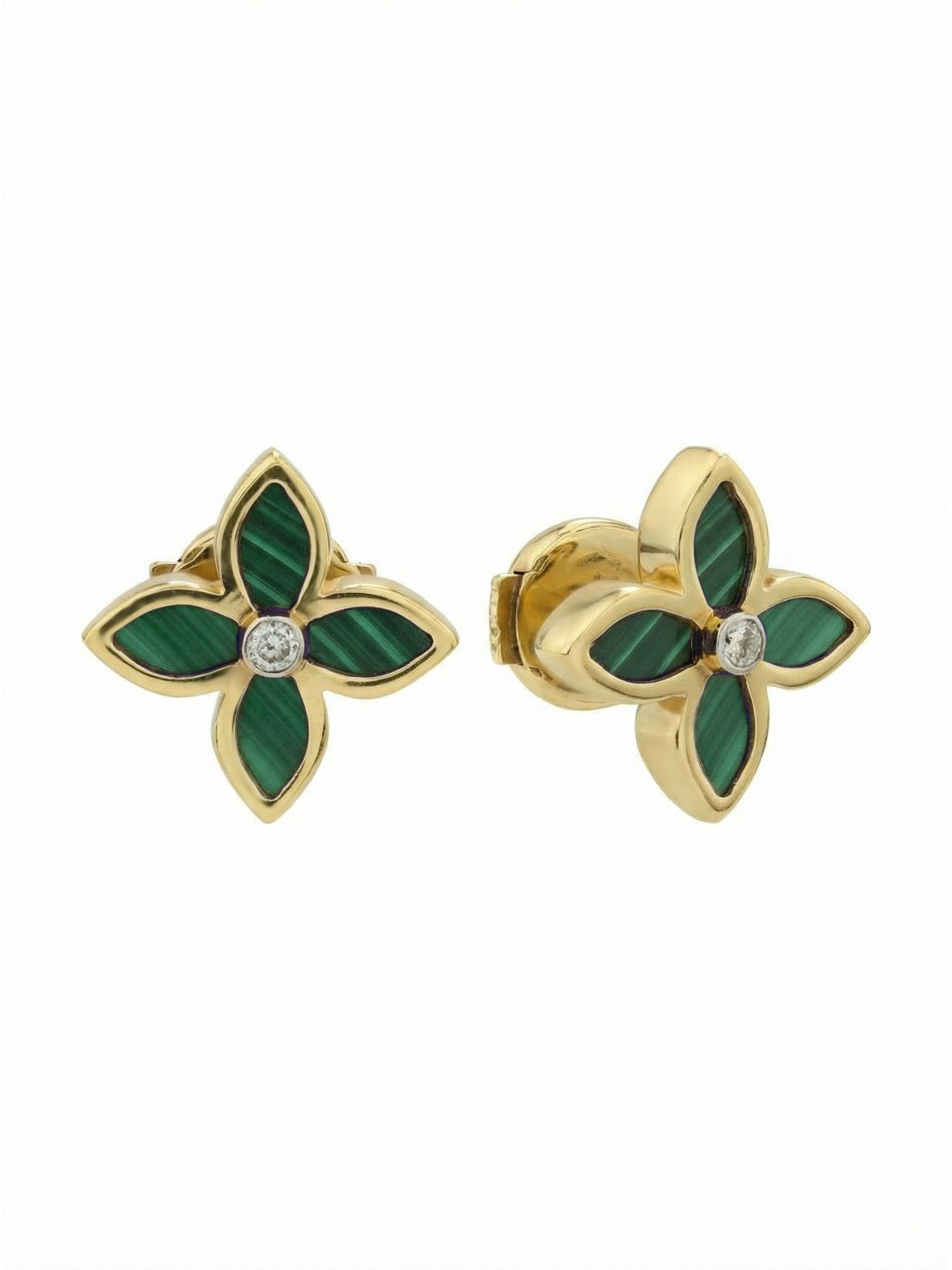 Серьги из лимонного золота c бриллиантами и малахитом