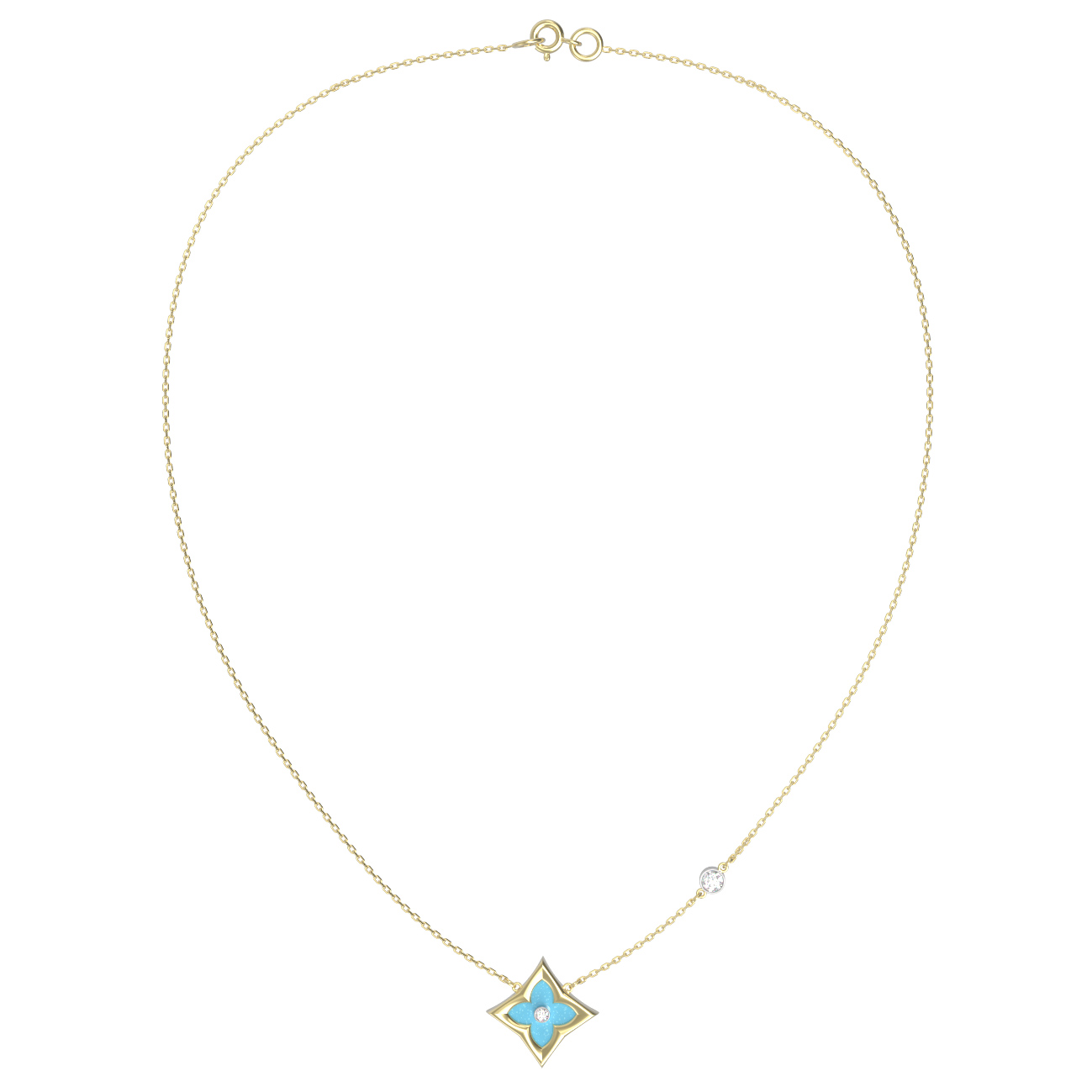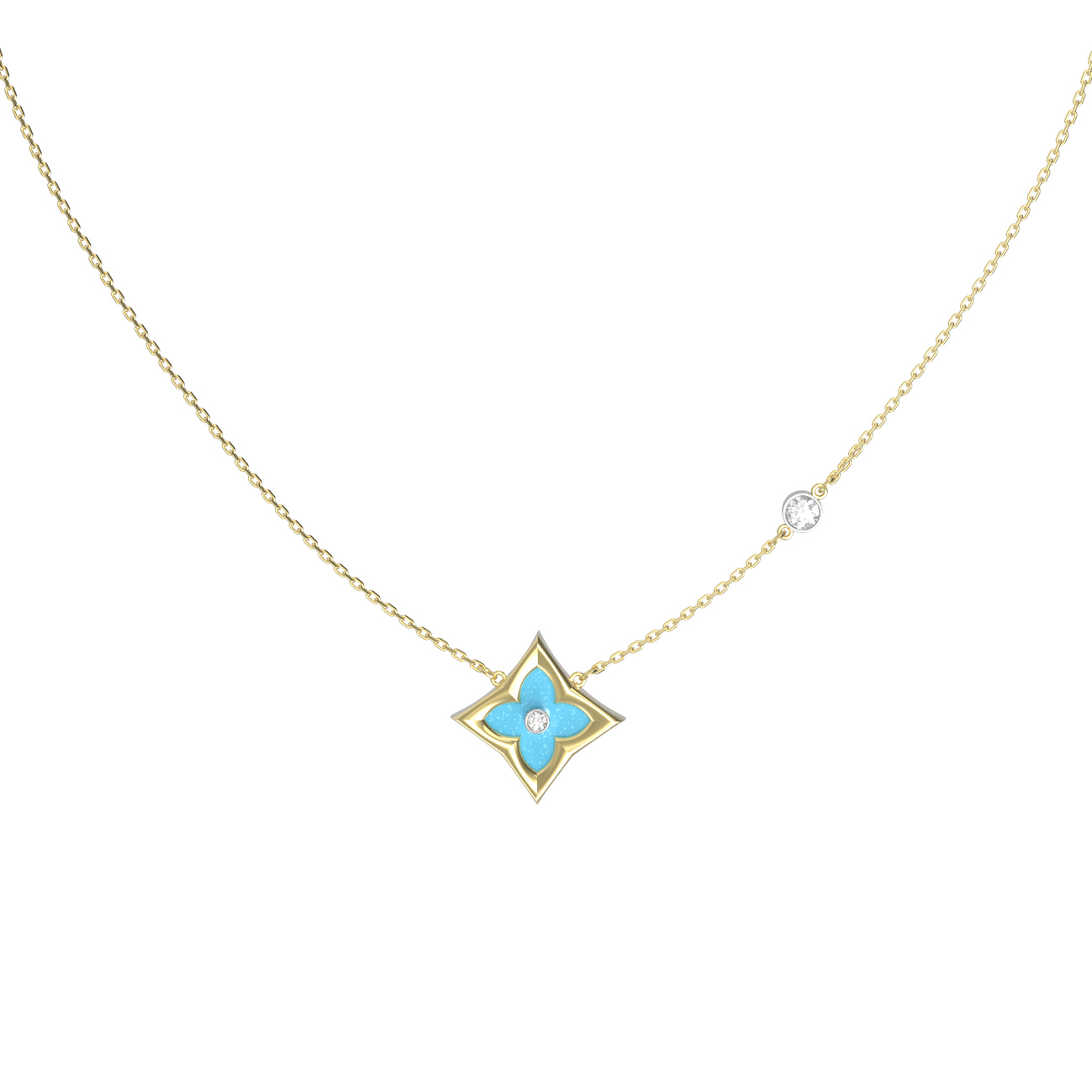Колье из лимонного золота c бриллиантами и бирюзой