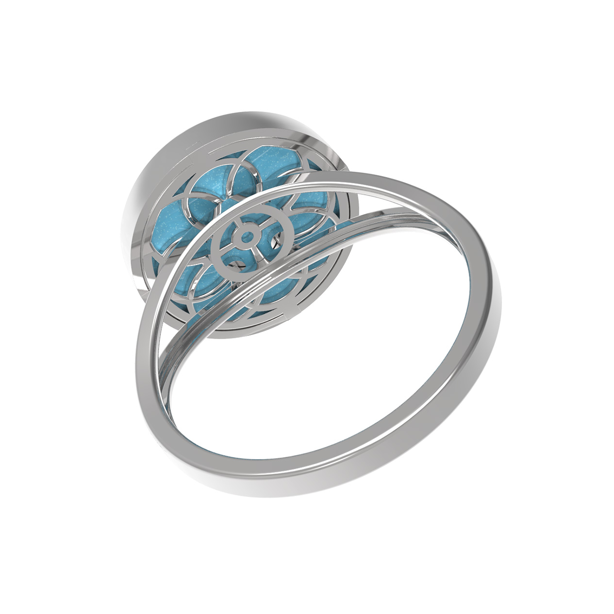 Кольцо из белого золота c бриллиантами и бирюзой