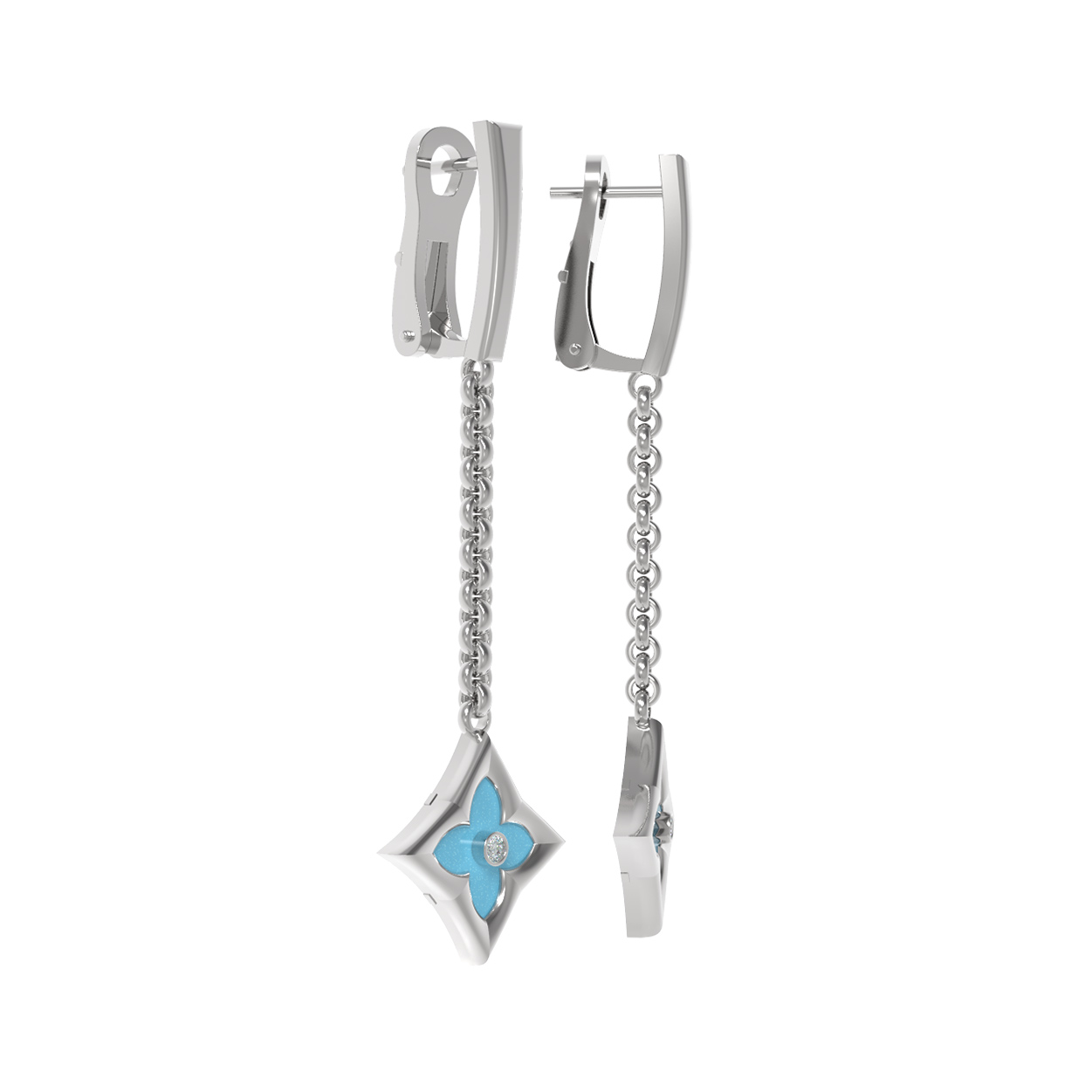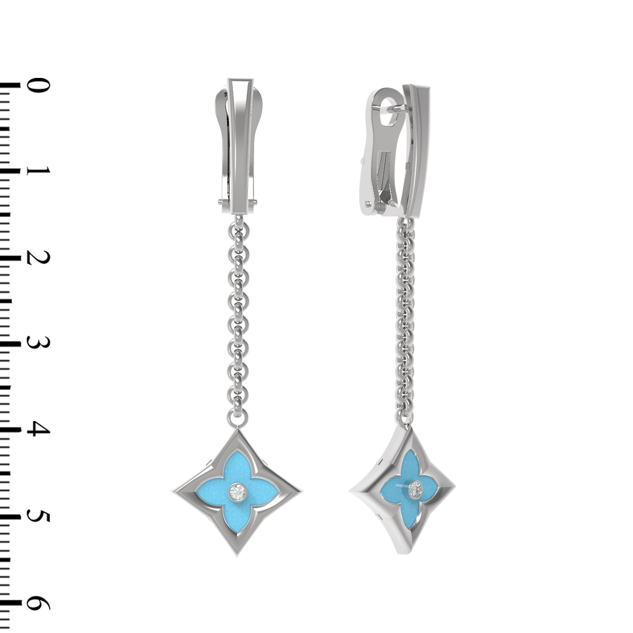 Серьги из белого золота c бриллиантами и бирюзой