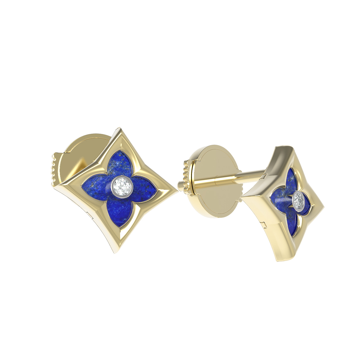 Серьги из лимонного золота c бриллиантами и лазуритом
