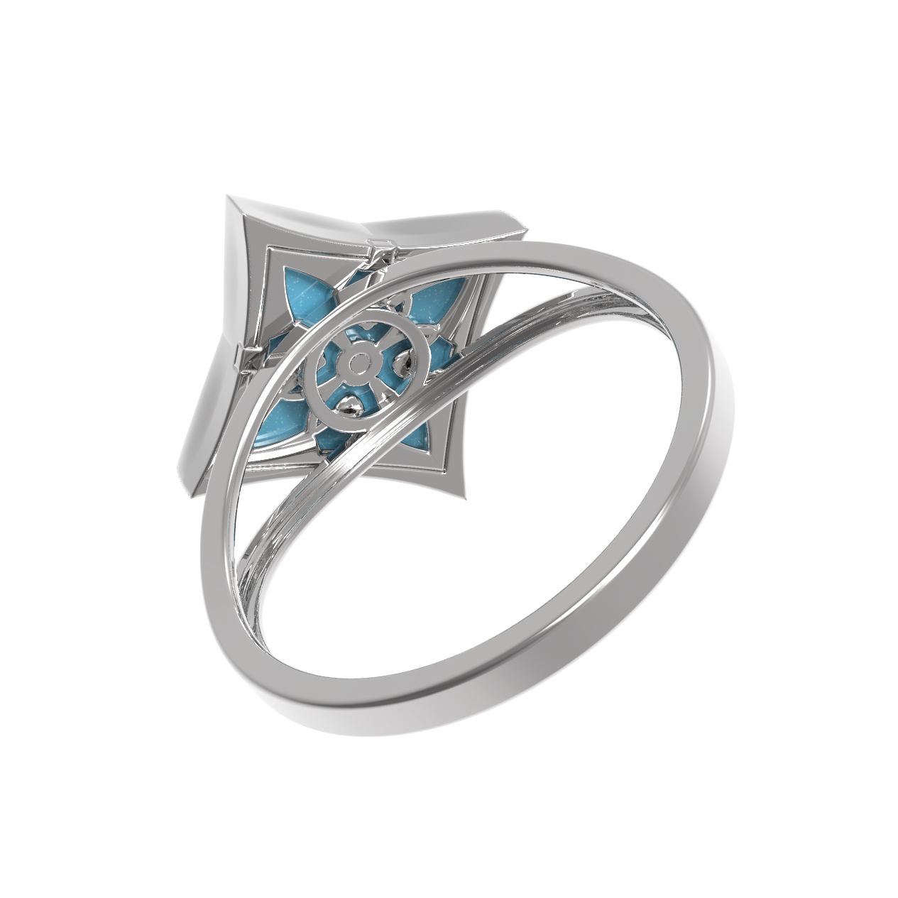 Кольцо из белого золота c бриллиантами и бирюзой