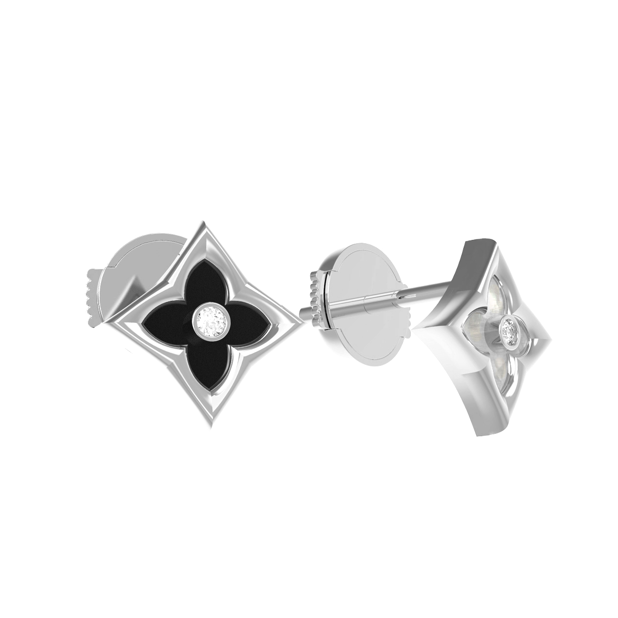Серьги из белого золота c бриллиантами, ониксом и перламутром