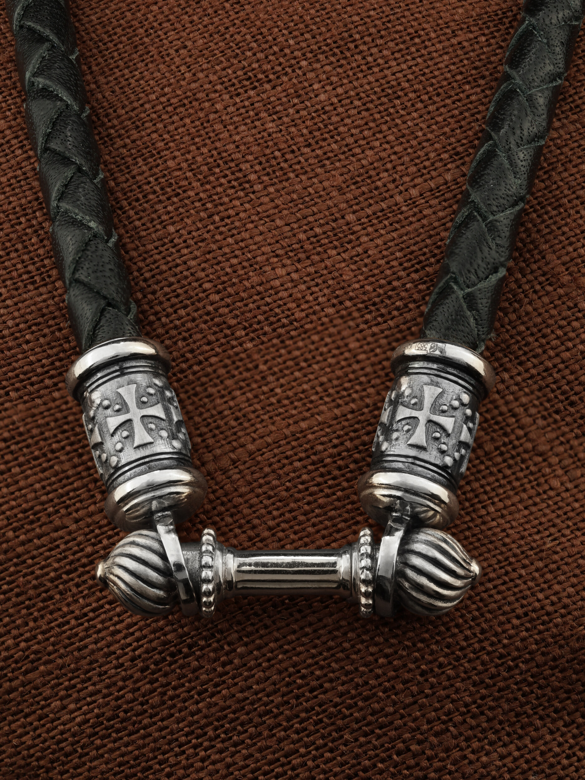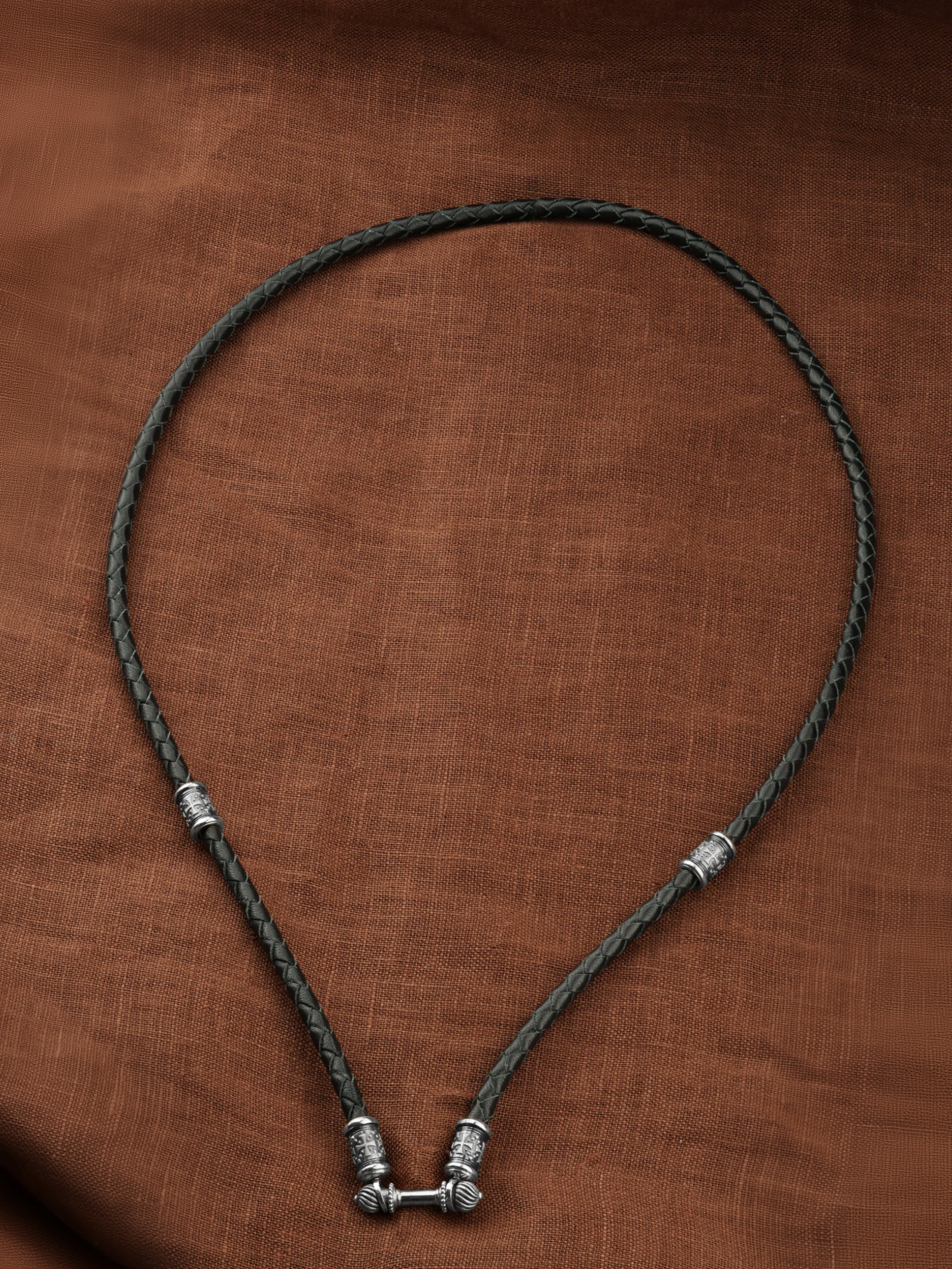 Гайтан из белого золота c кожаным шнурком