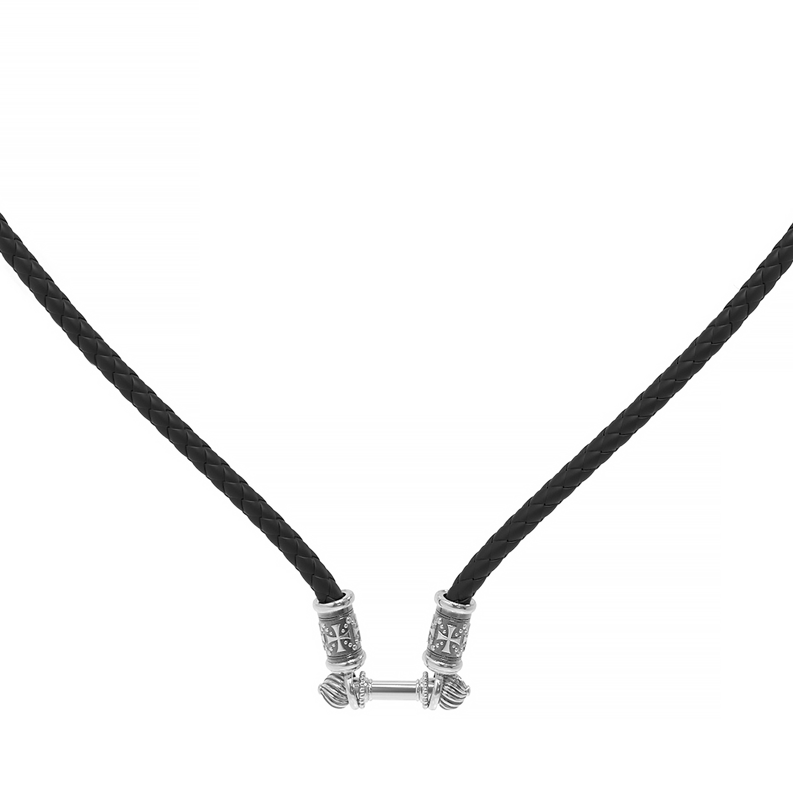Гайтан из белого золота c кожаным шнурком