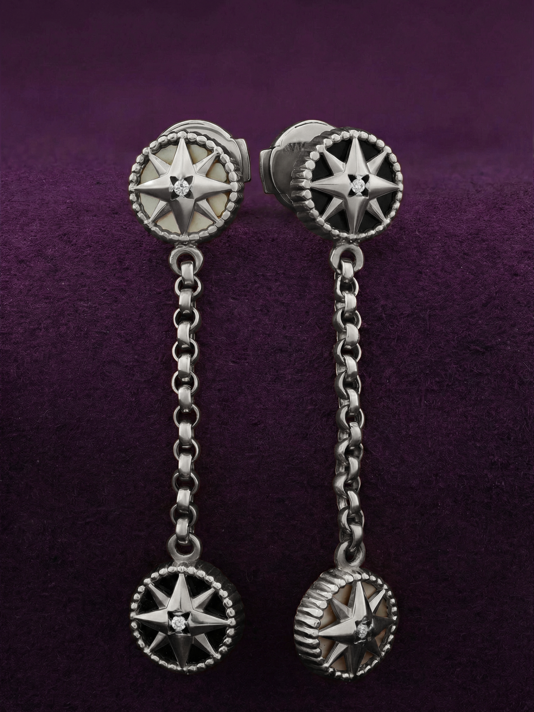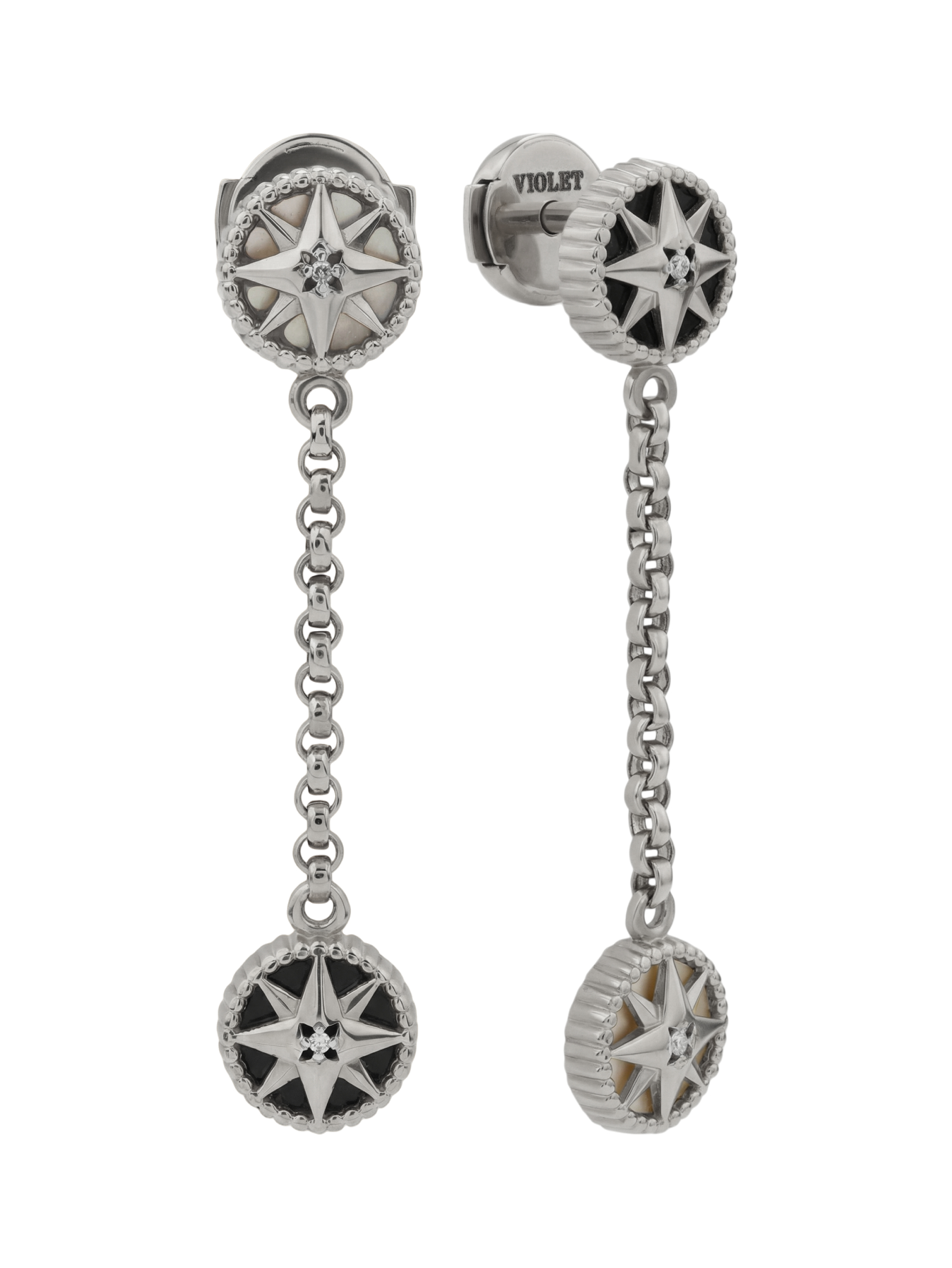 Серьги из белого золота c бриллиантами, ониксом и перламутром
