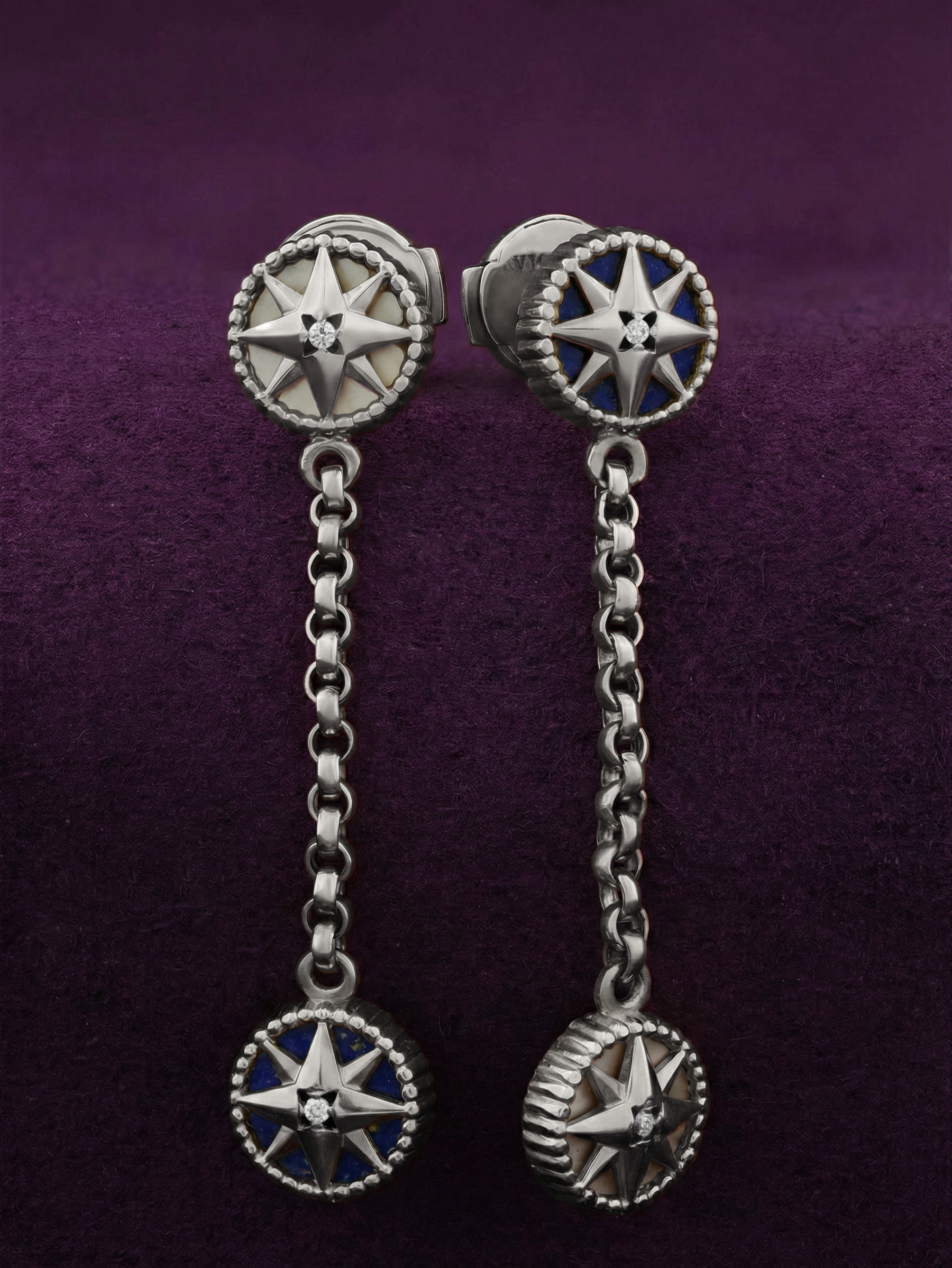 Серьги из белого золота c бриллиантами, лазуритом и перламутром