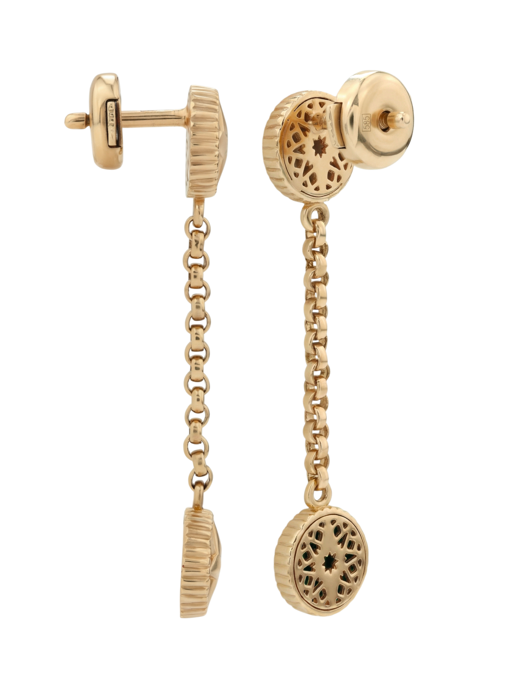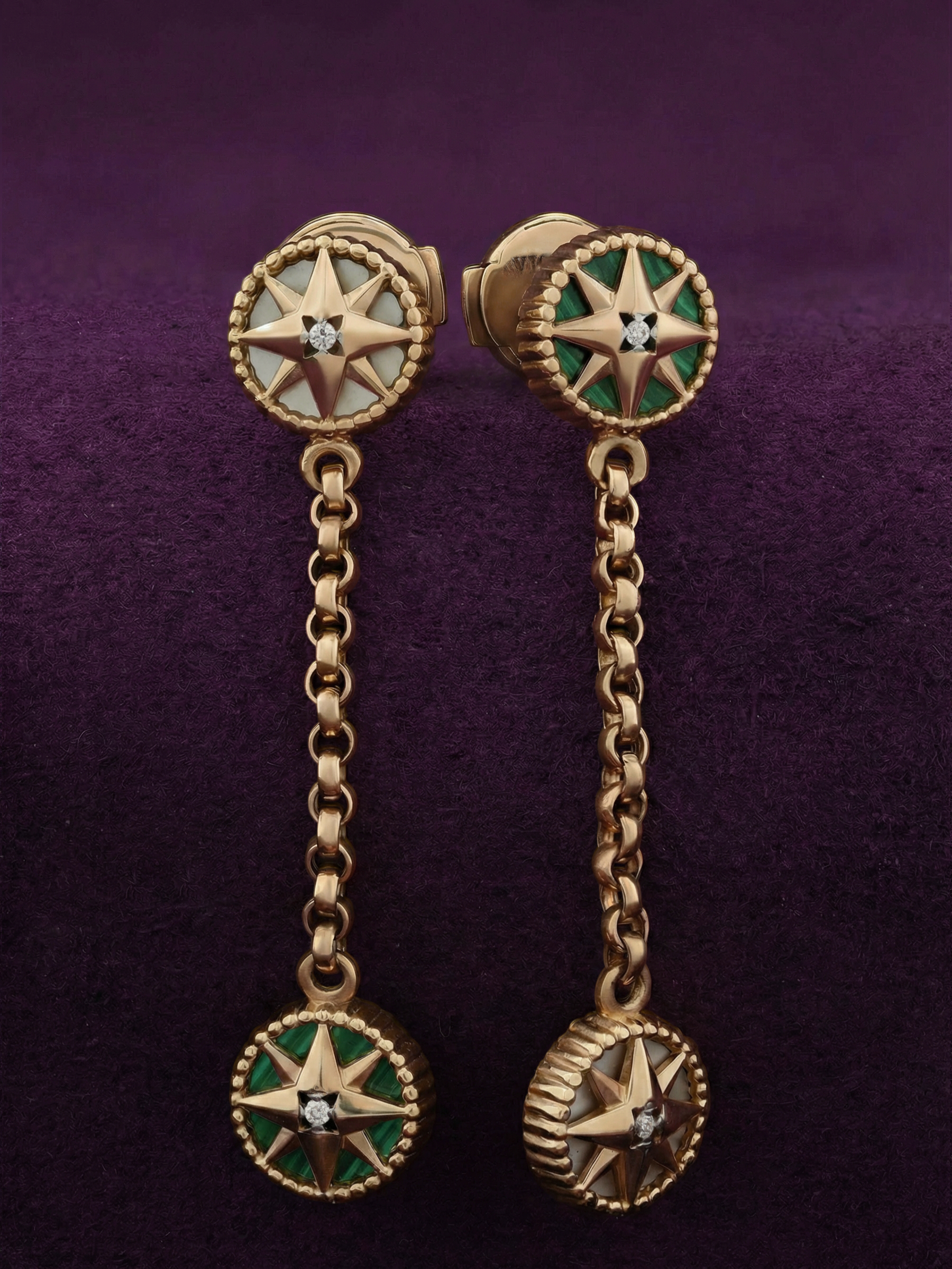 Серьги из золота c бриллиантами, малахитом и перламутром