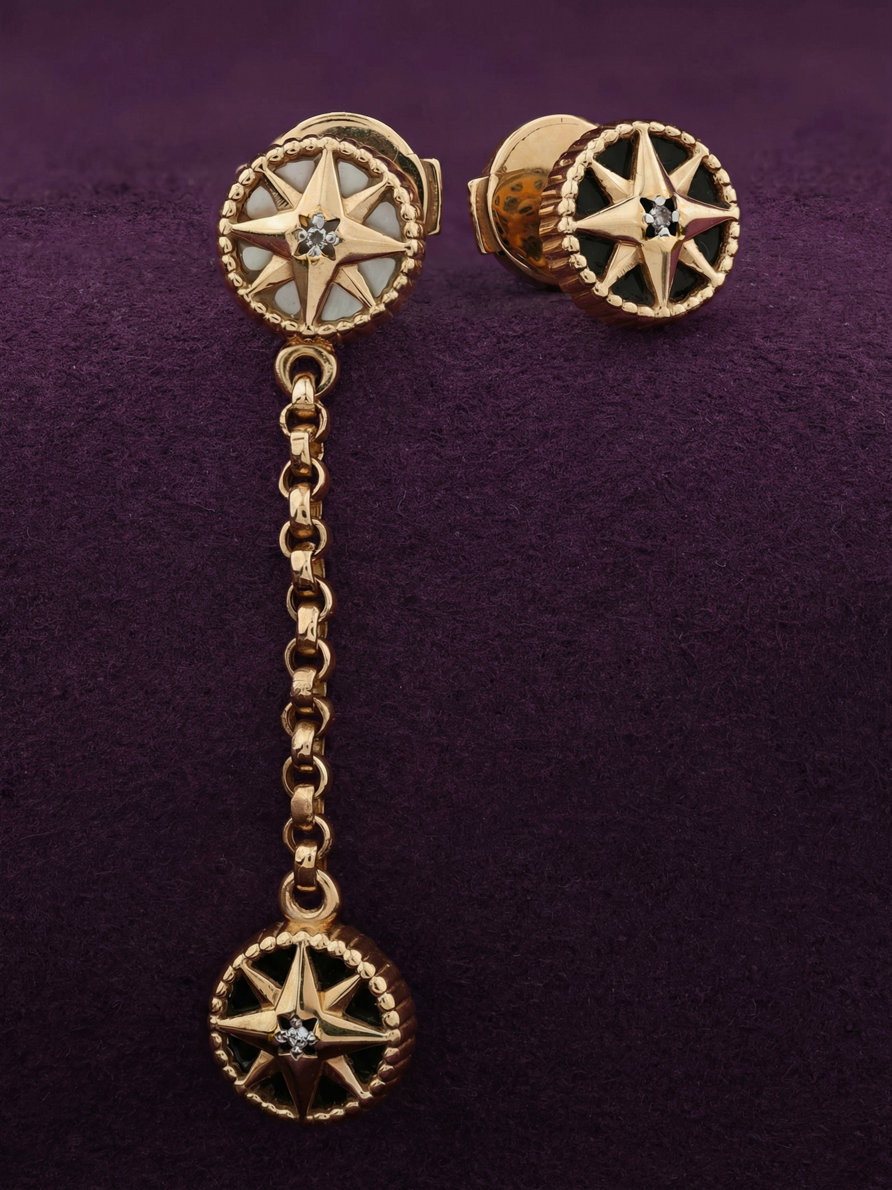 Серьги из золота c бриллиантами, ониксом и перламутром