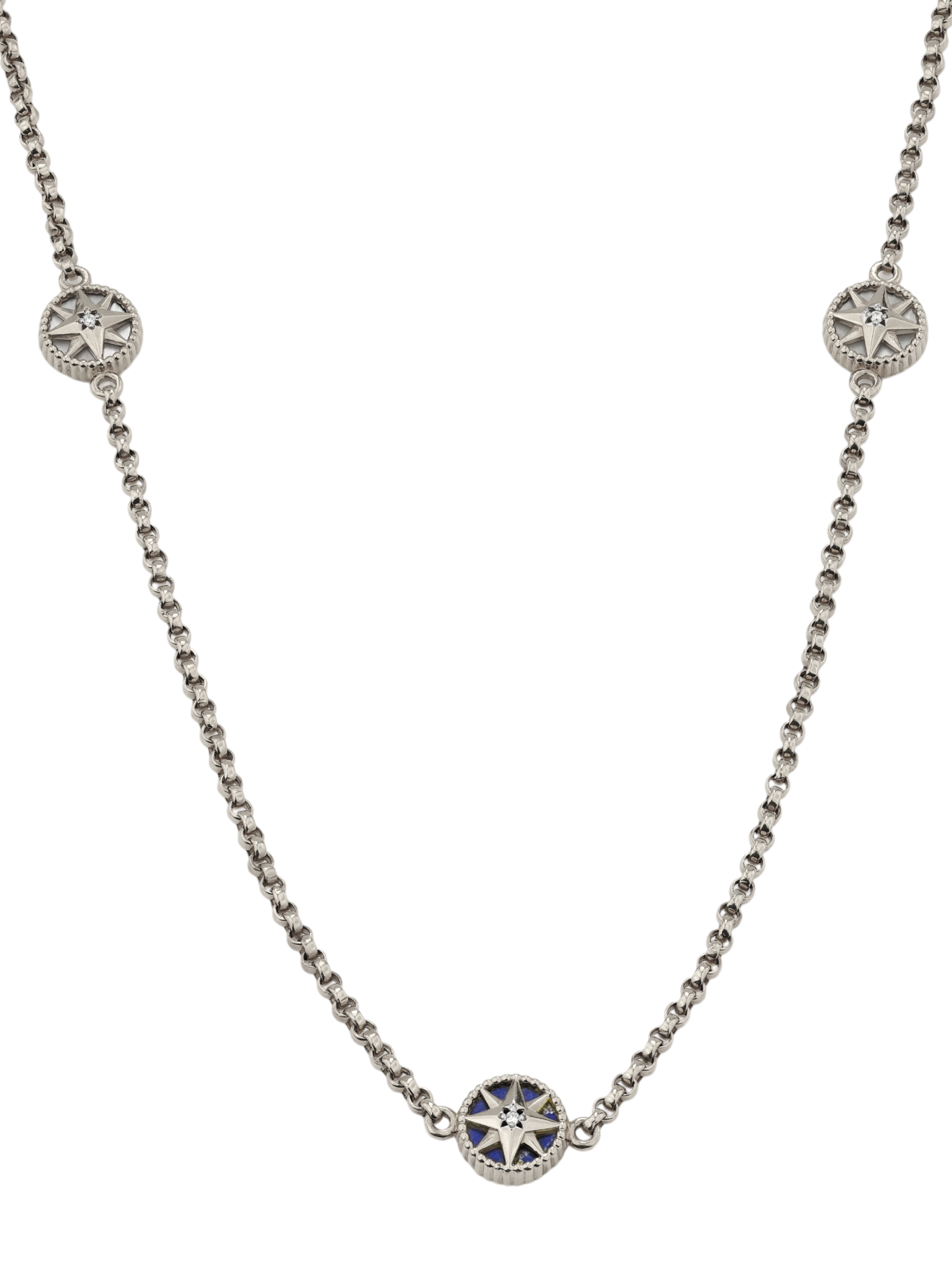 Колье из белого золота c бриллиантами, лазуритом и перламутром