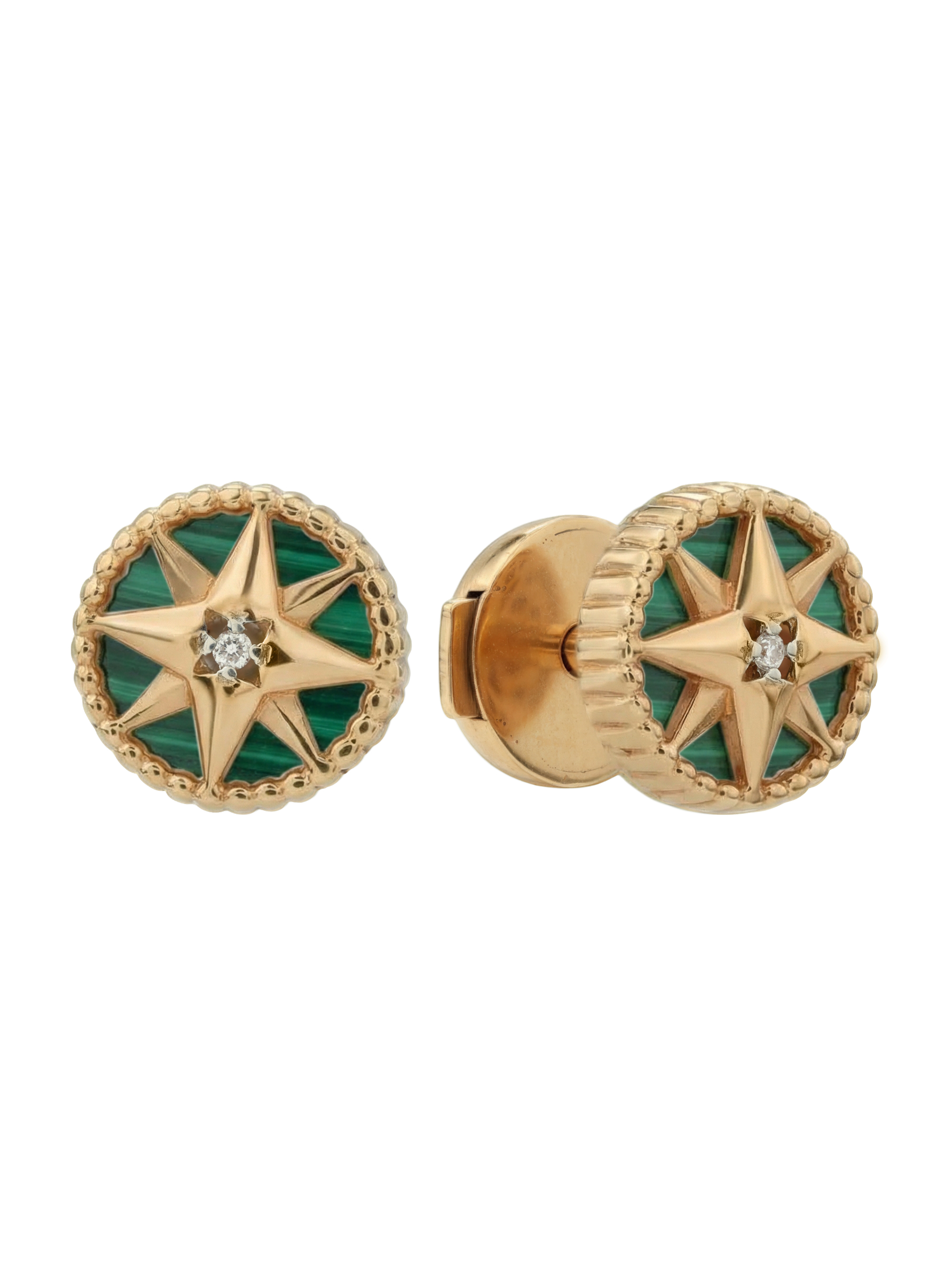 Серьги из золота c бриллиантами и малахитом