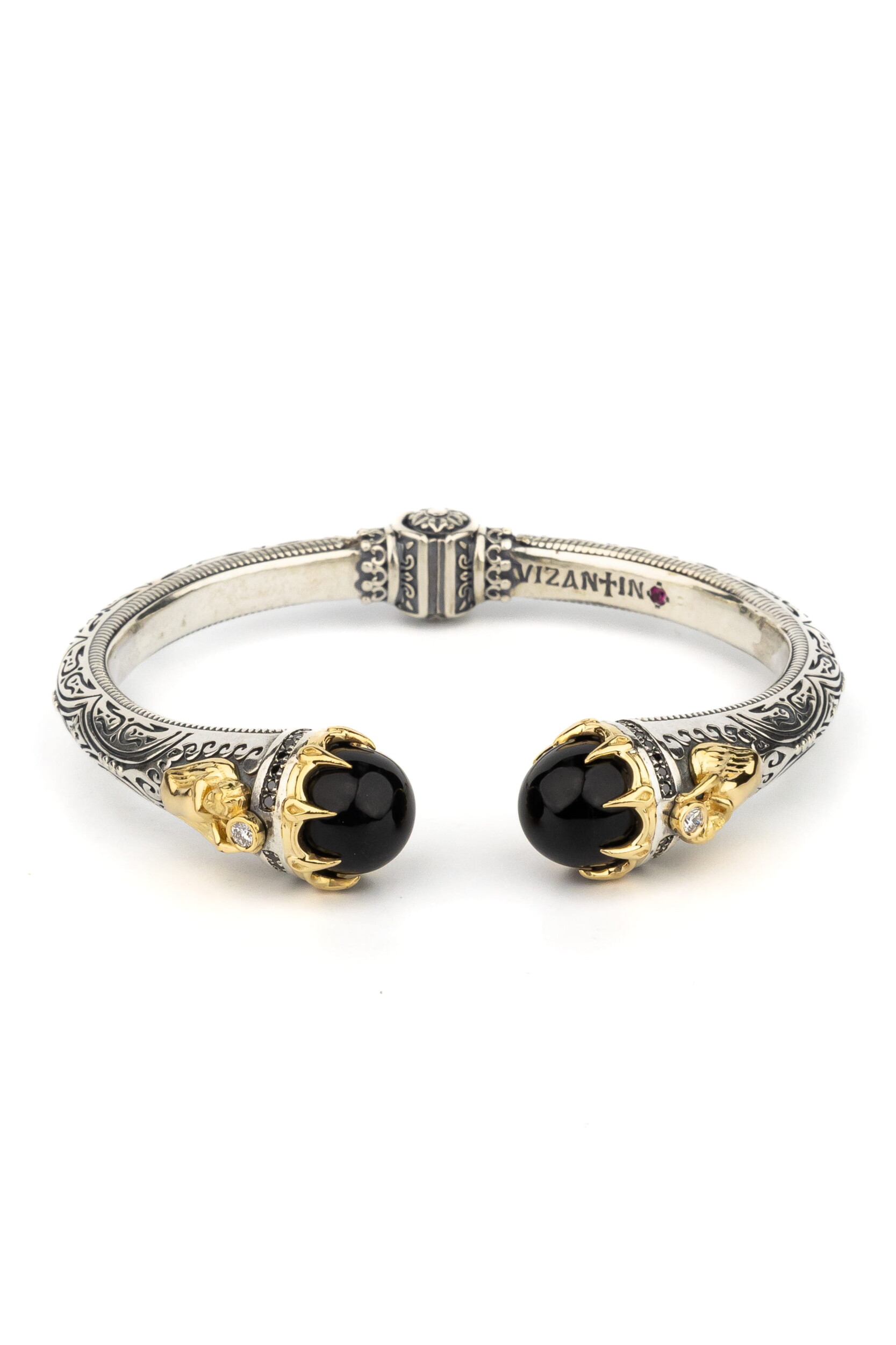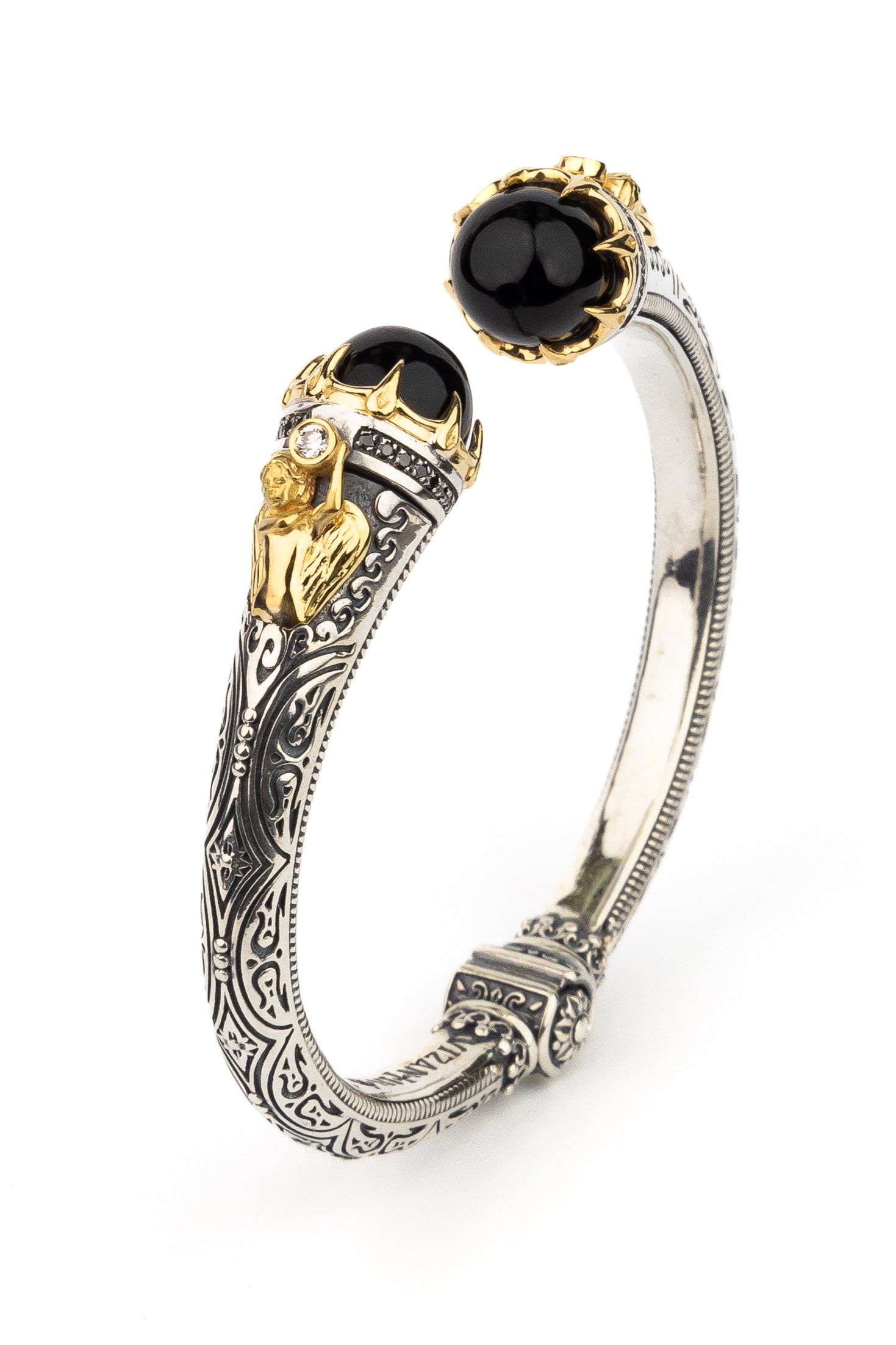 Браслет из серебра и золота c бриллиантами, ониксом и рубином