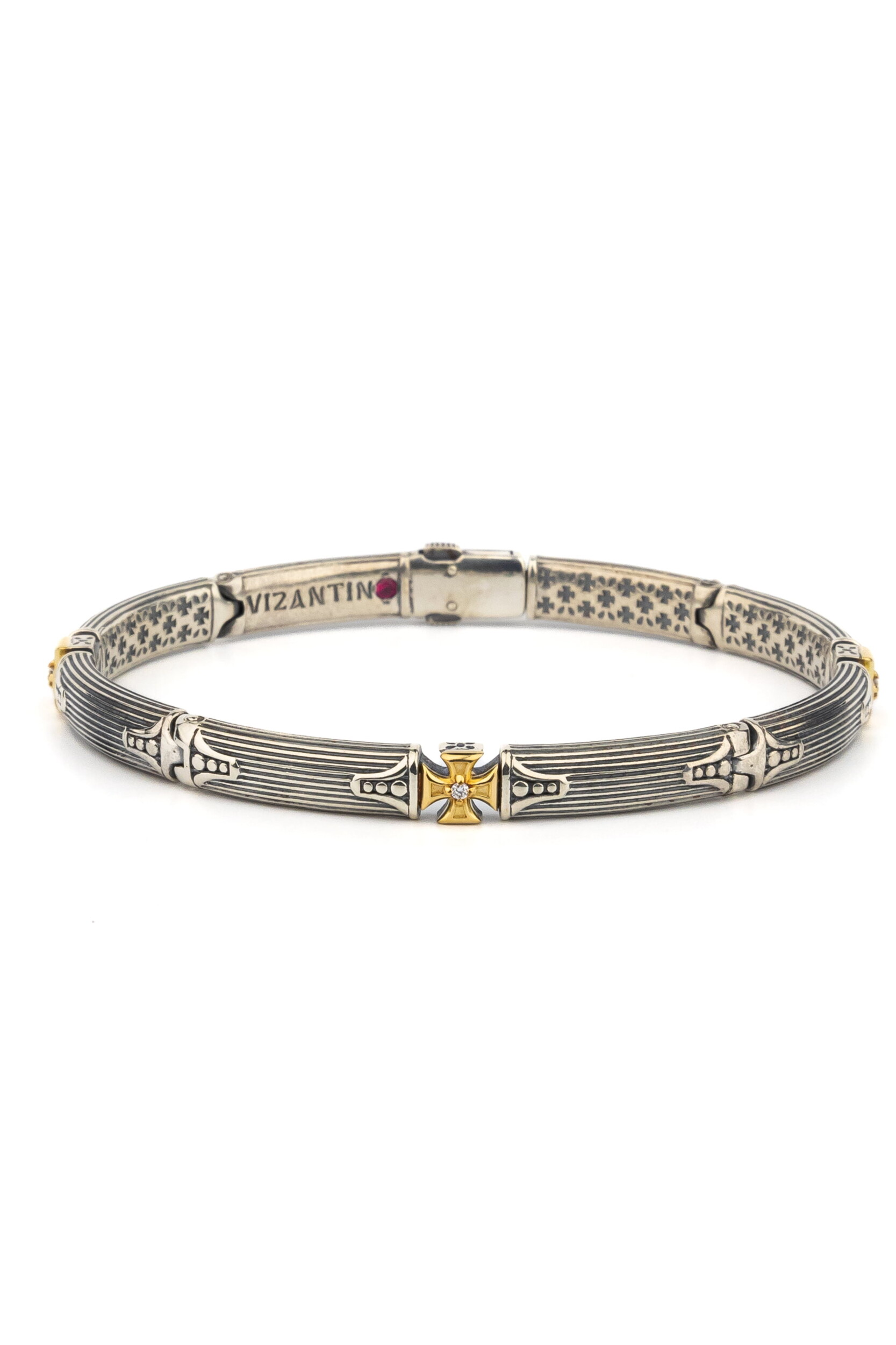 Браслет из серебра и золота c бриллиантами и рубином