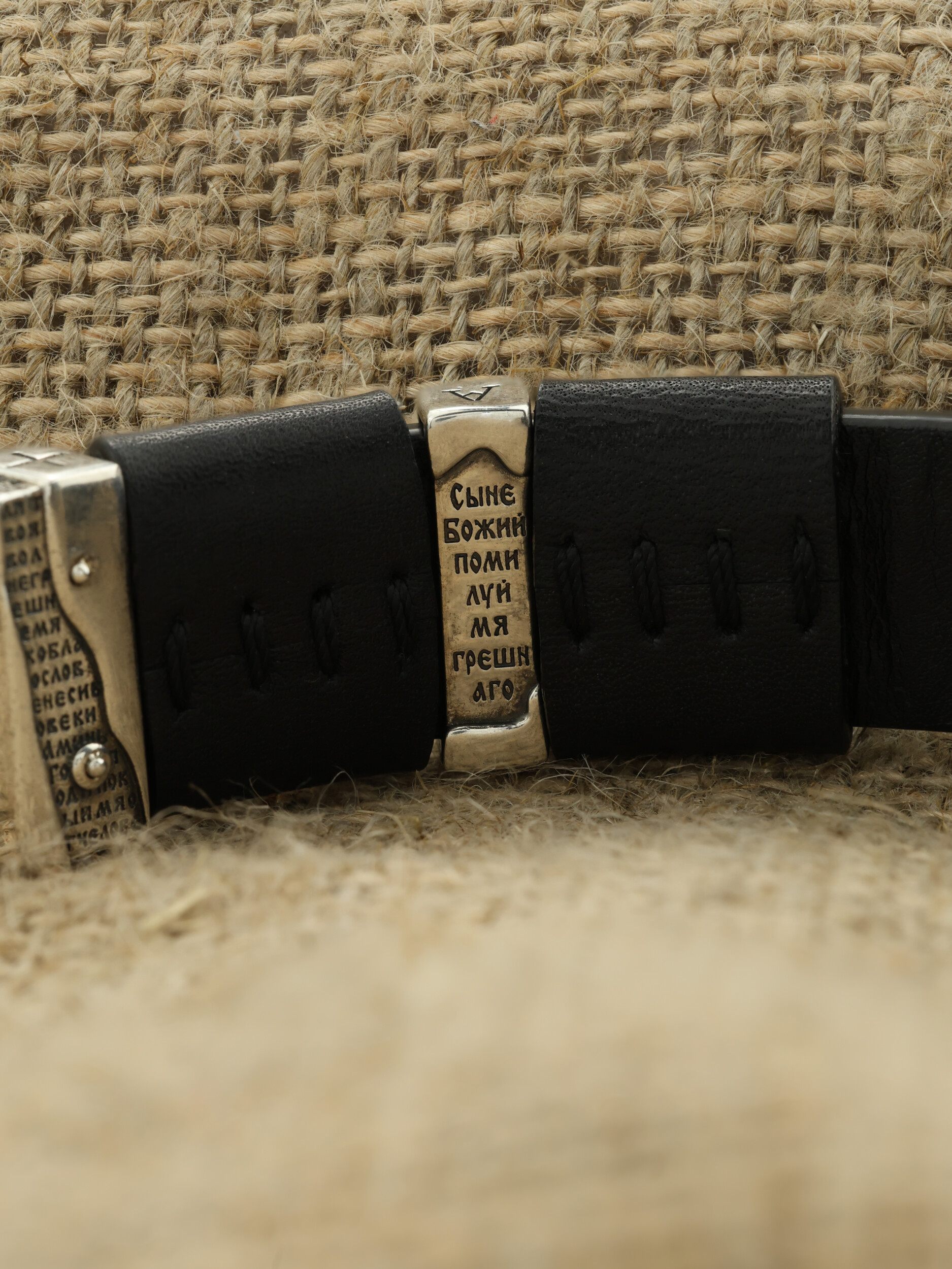 Браслет из серебра c кожаным шнурком