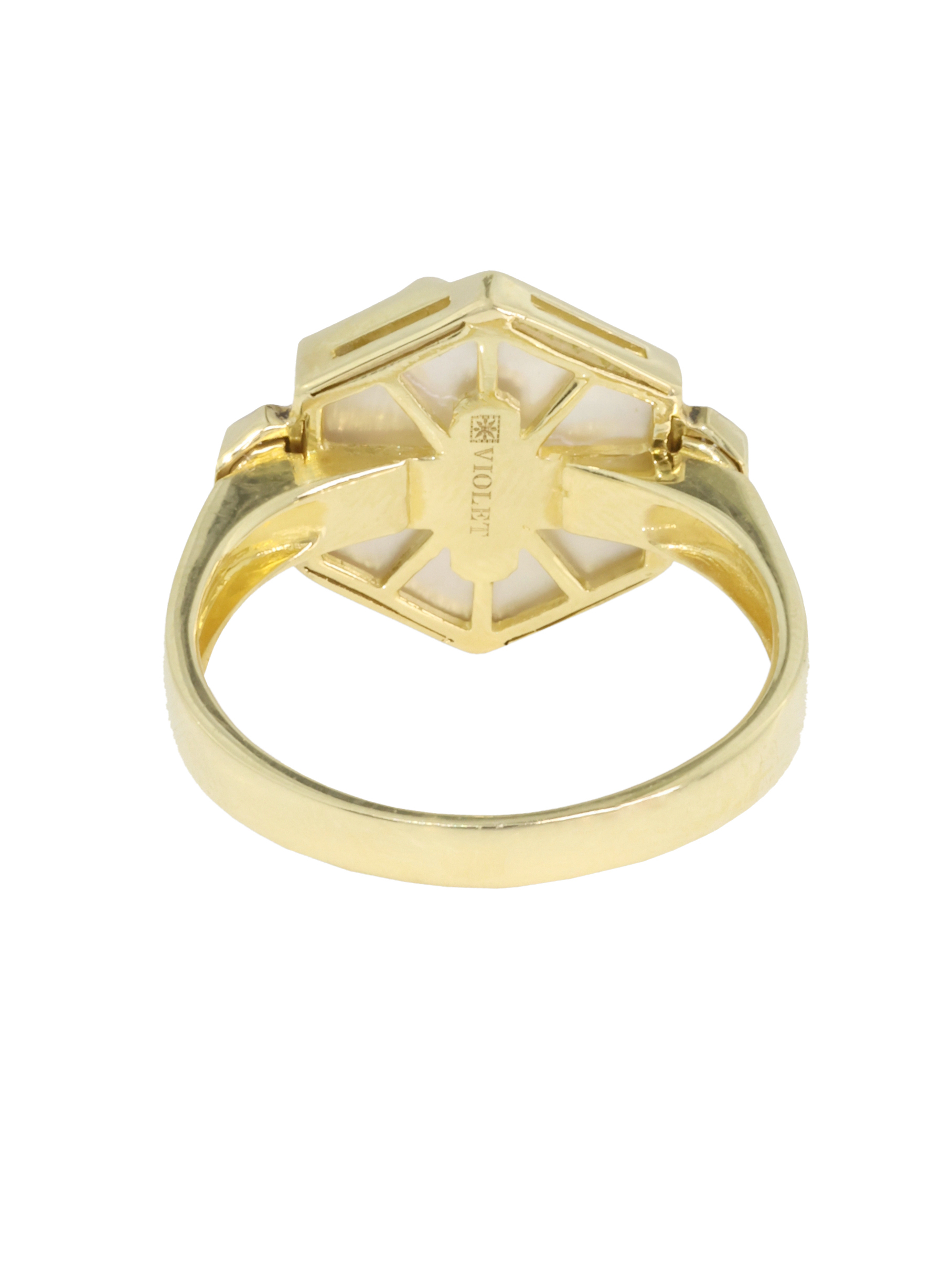 Кольцо из лимонного золота c бриллиантами и перламутром
