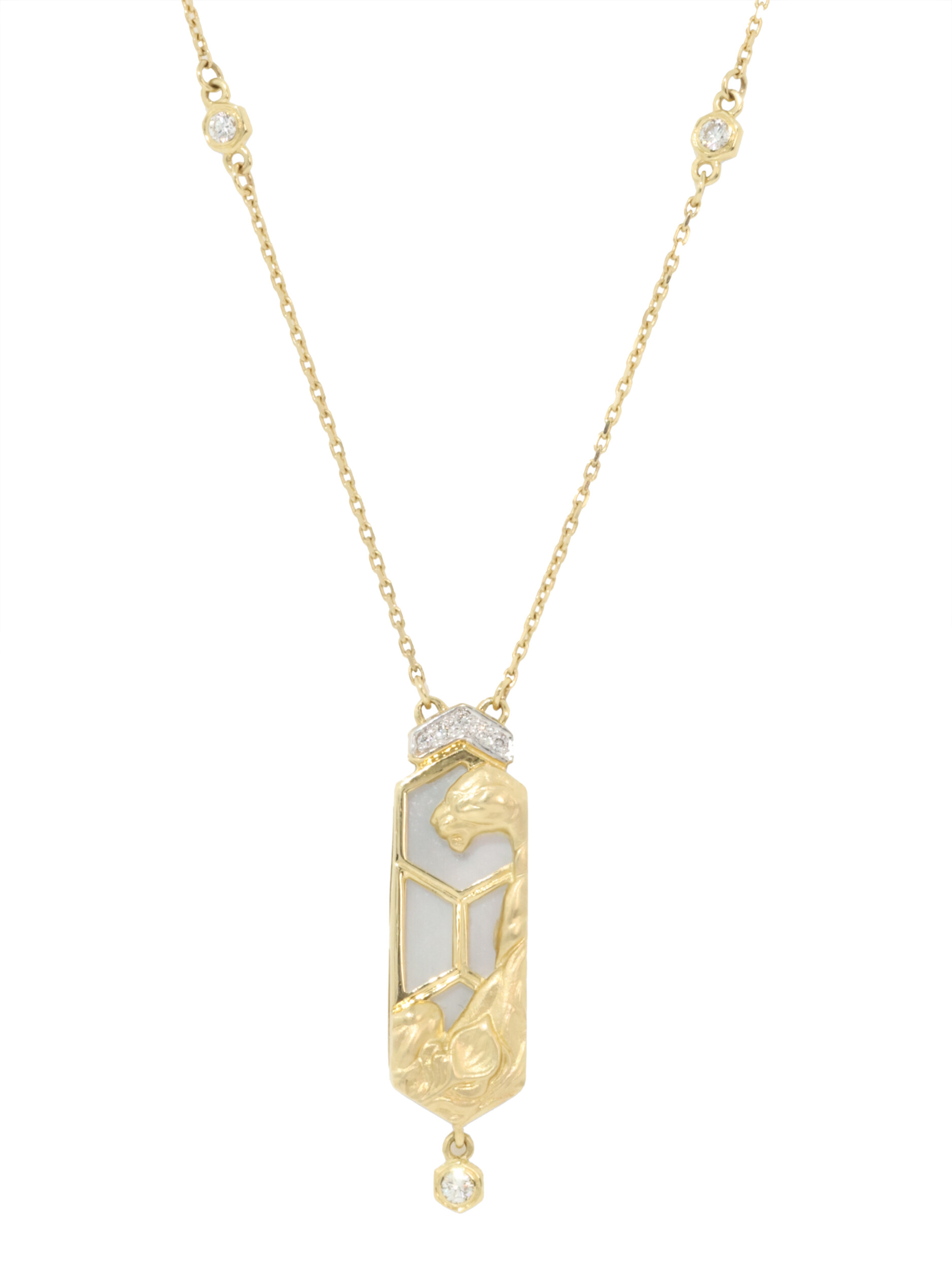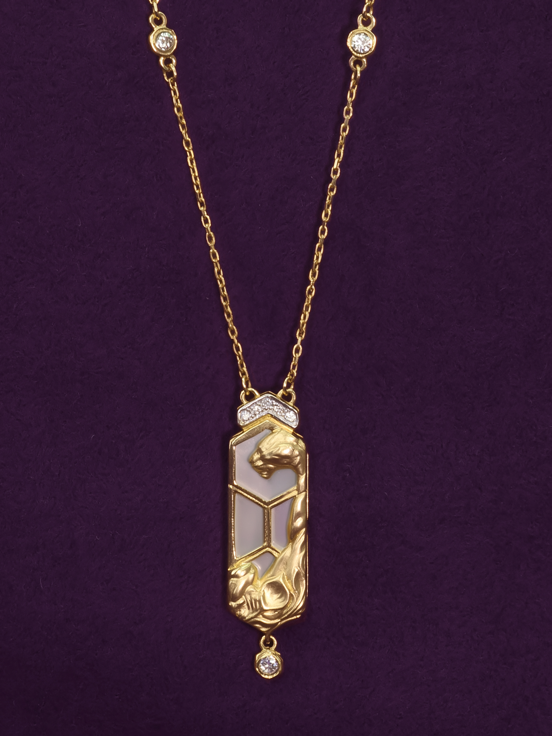 Колье из лимонного золота c бриллиантами и перламутром
