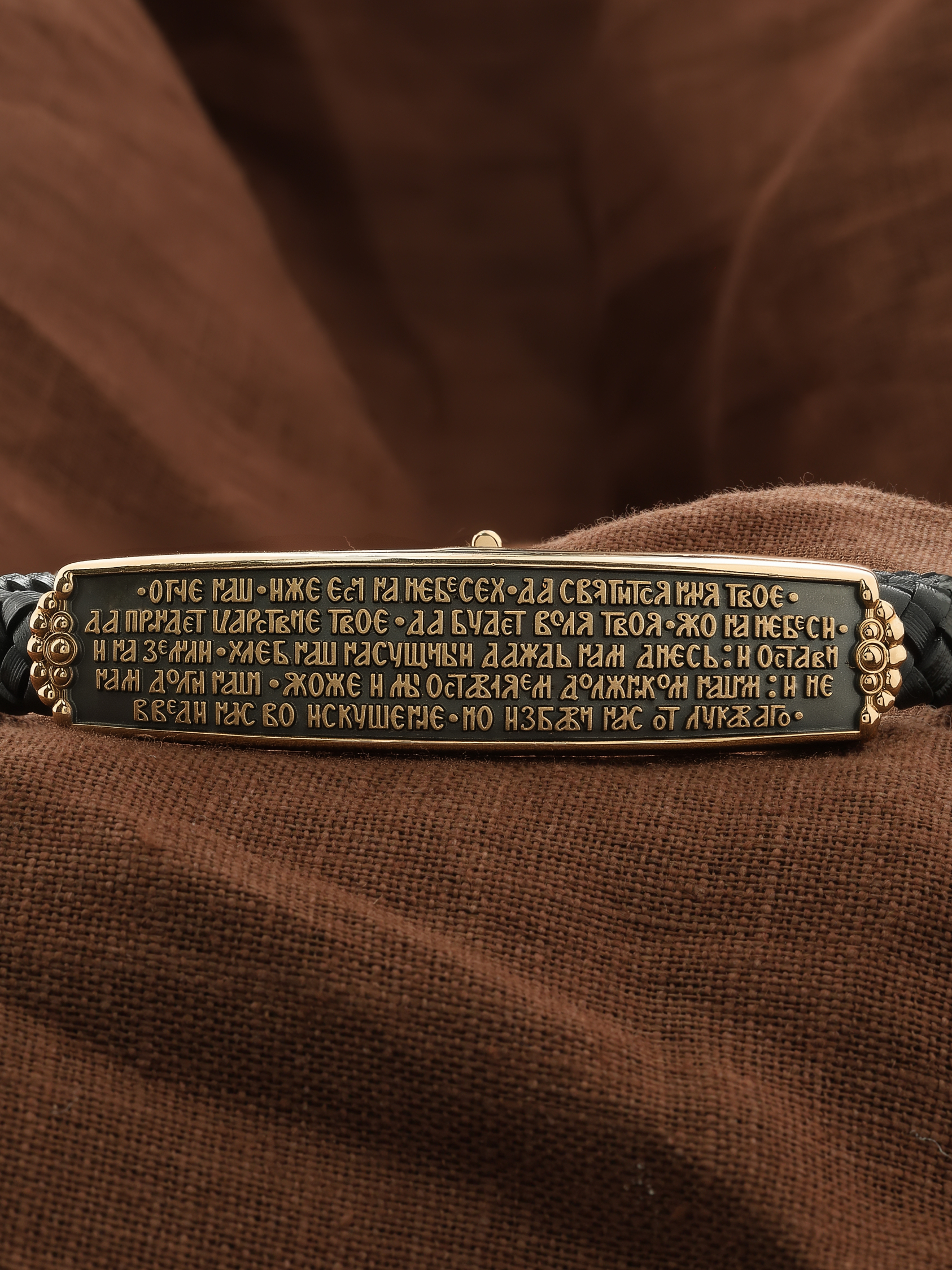 На основном звене написана молитва: «Отче наш, Иже еси на небесех! Да святится имя Твое, да приидет Царствие Твое, да будет воля Твоя, яко на небеси и на земли. Хлеб наш насущный даждь нам днесь; и остави нам долги наша, якоже и мы оставляем должником нашим; и не введи нас во искушение, но избави нас от лукаваго».