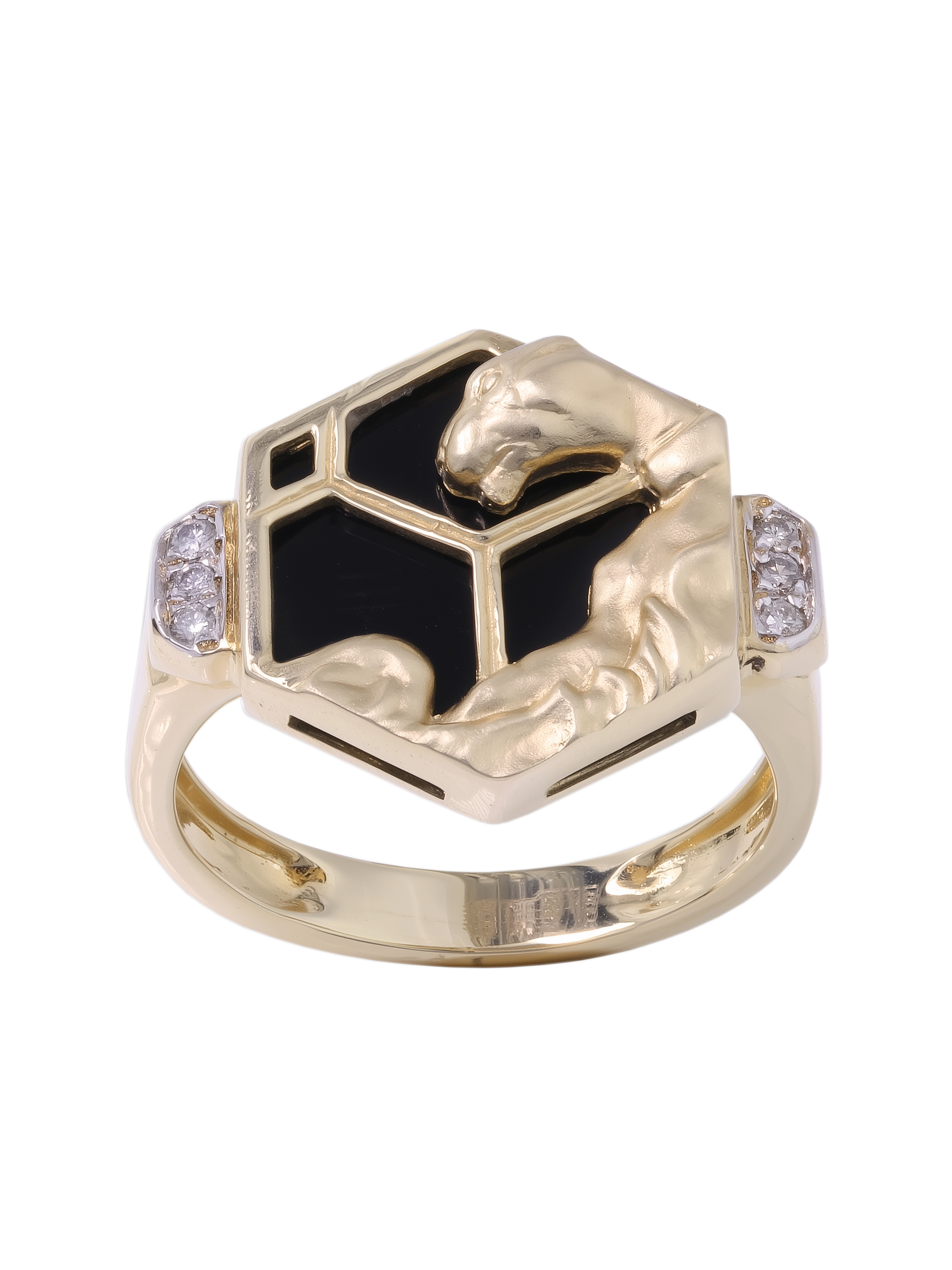 Кольцо из лимонного золота c бриллиантами и ониксом