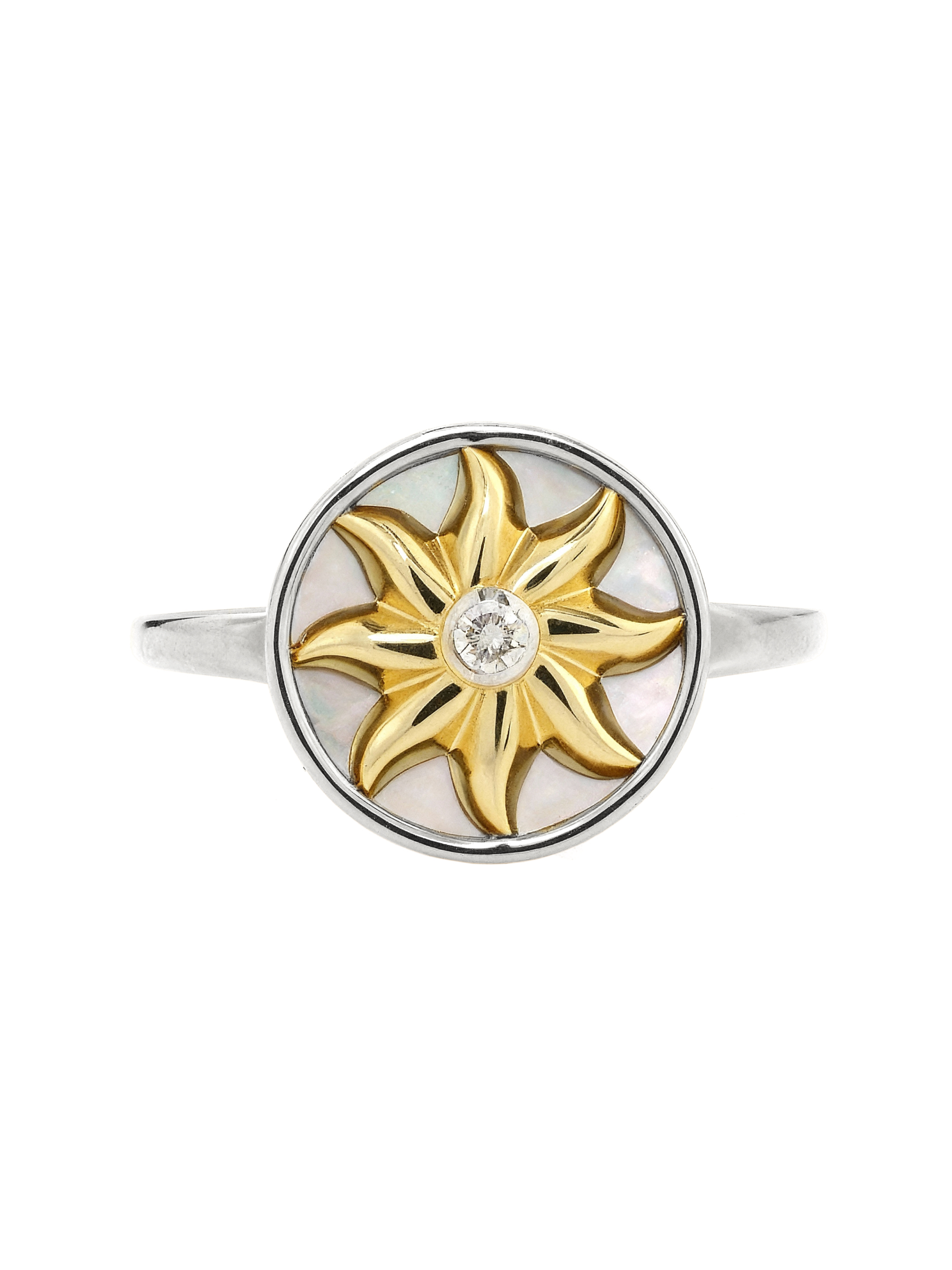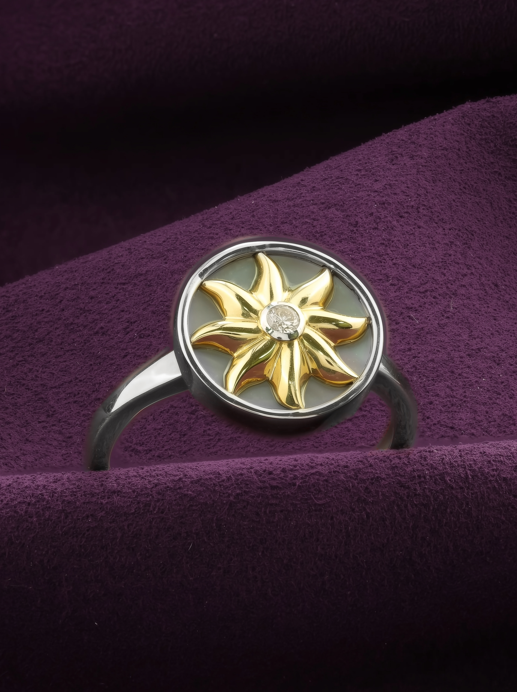 Кольцо из белого золота c бриллиантами и перламутром
