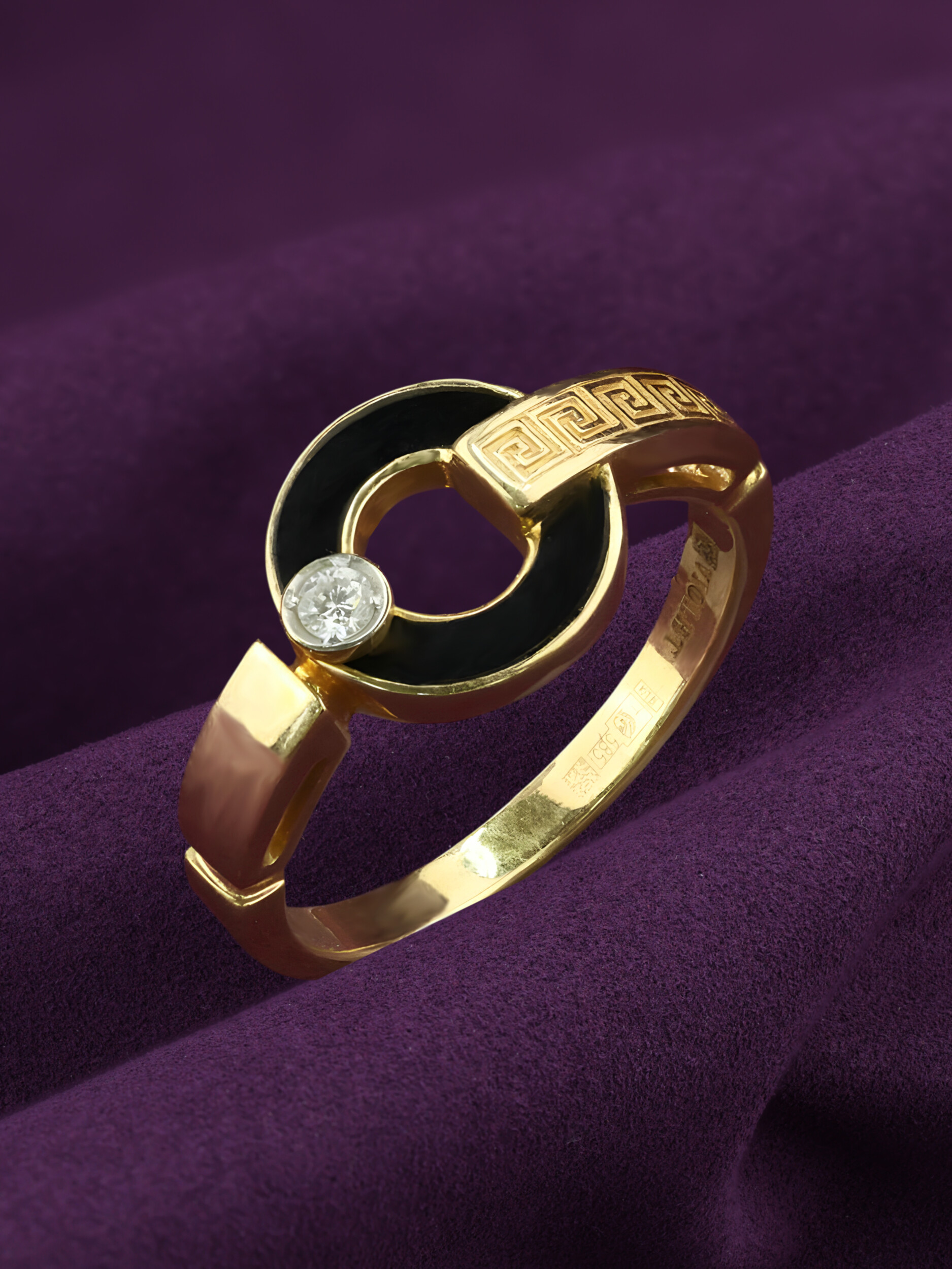 Кольцо из лимонного золота c бриллиантами и ониксом