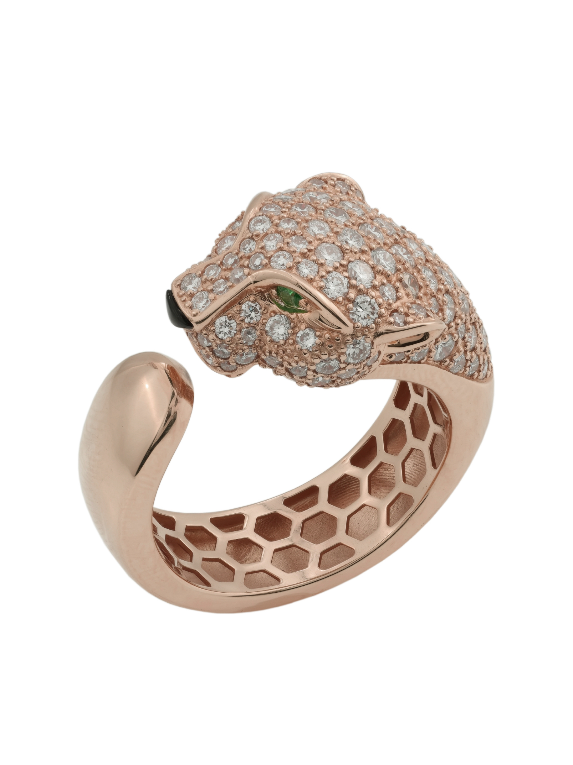 Кольцо из розового золота c бриллиантами, изумрудом и ониксом