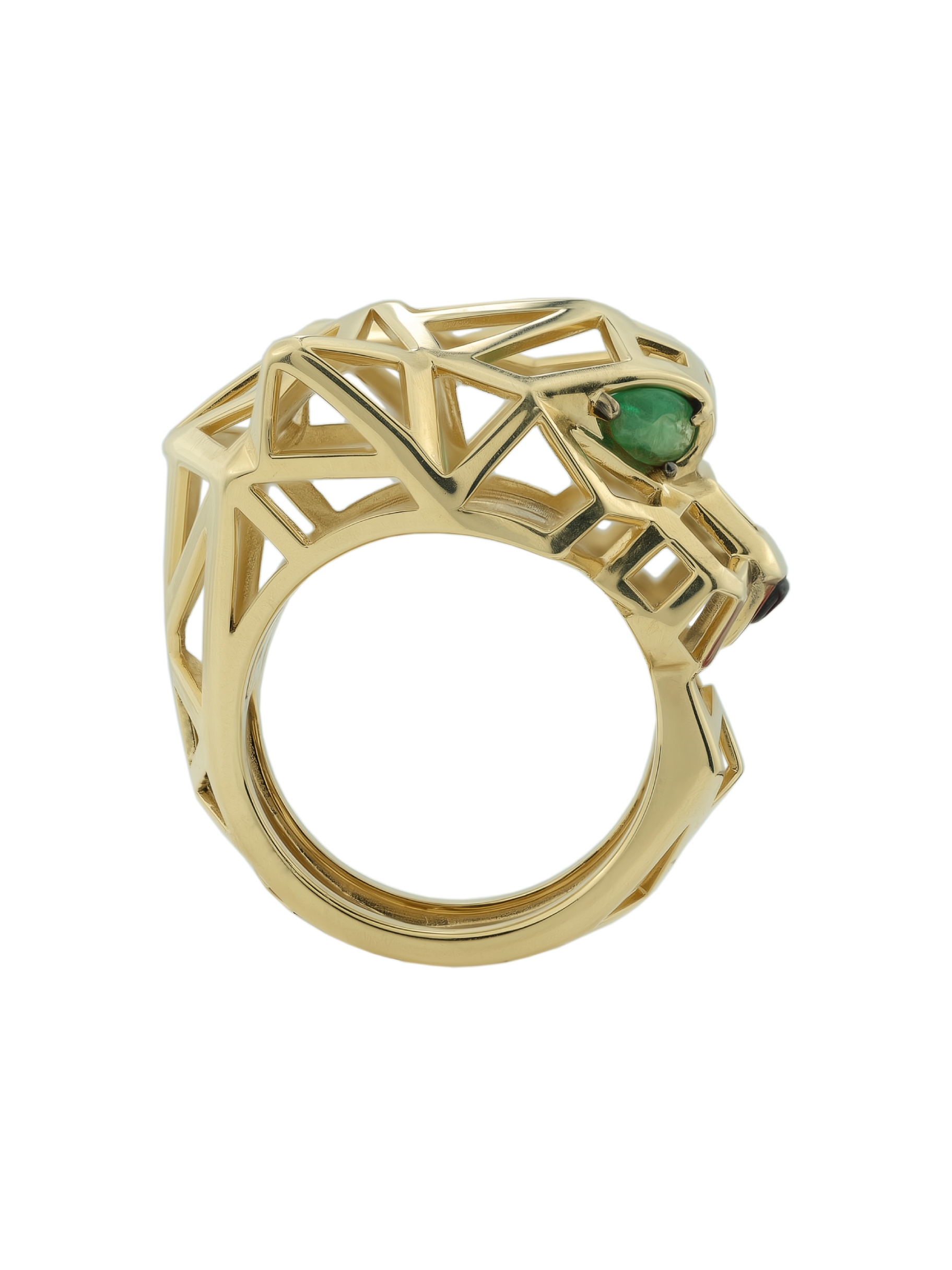 Кольцо из лимонного золота c изумрудом и ониксом