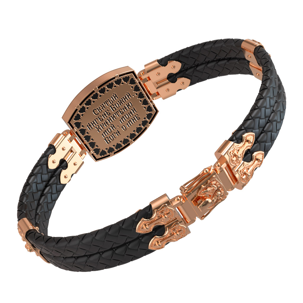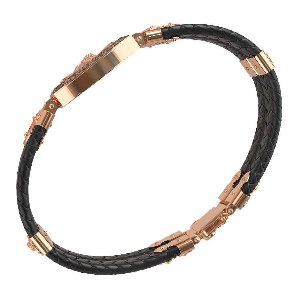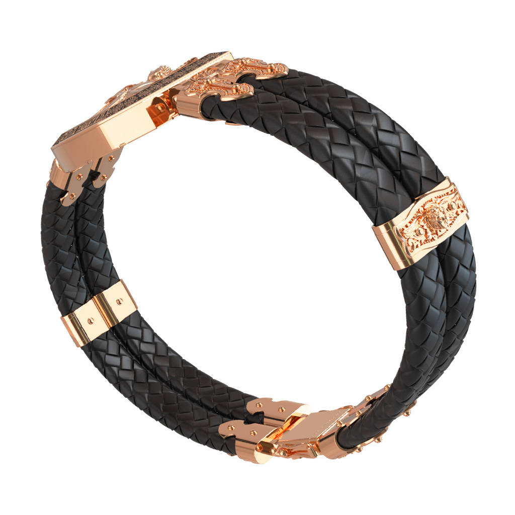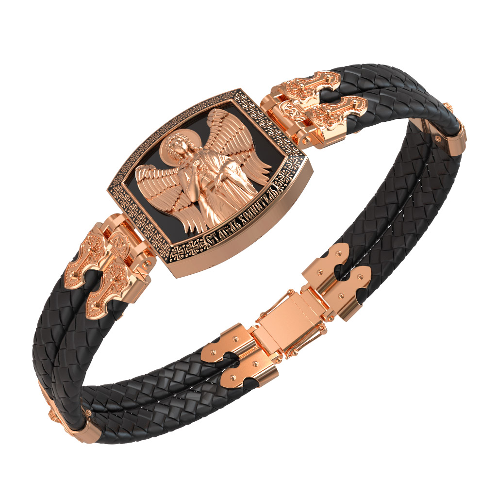 Браслет из золота c эмалью, шнурком и ониксом