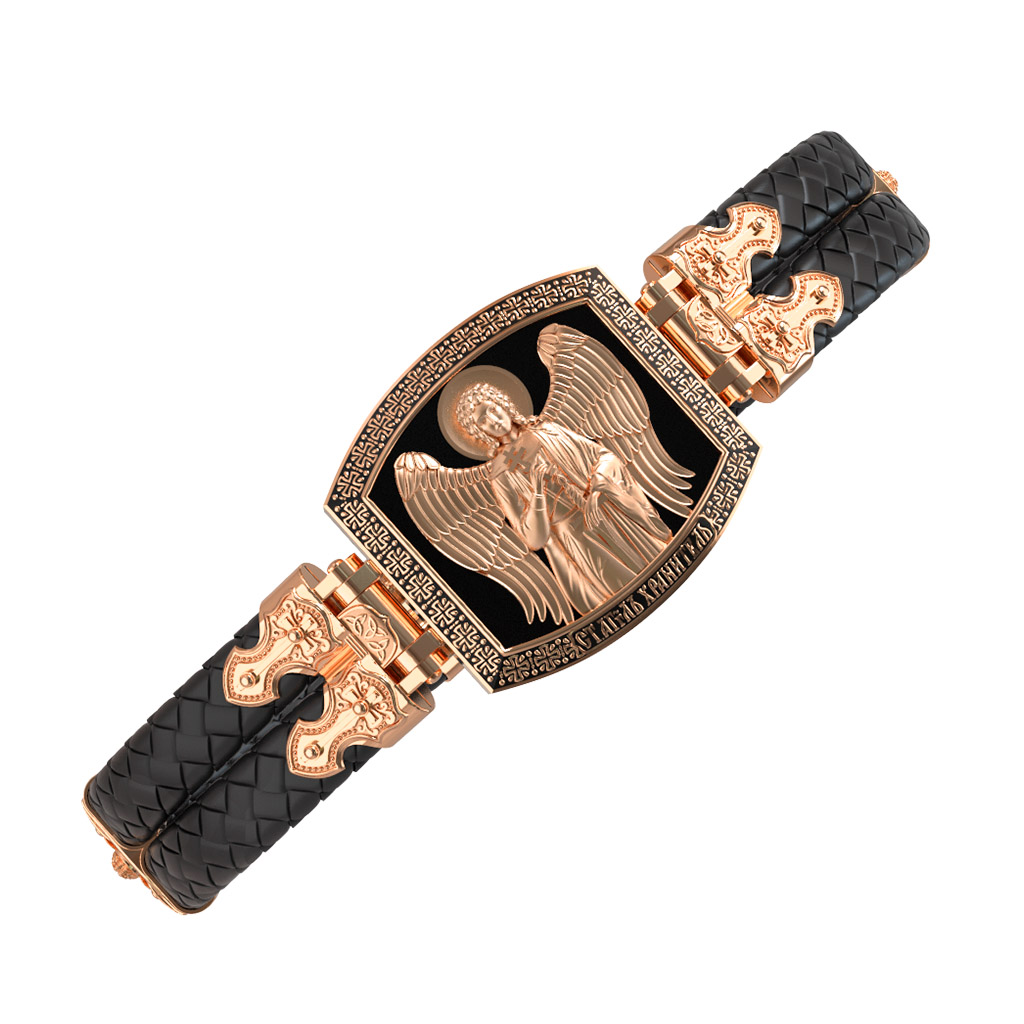 На лицевой стороне основного звена изображён Святой Ангел-Хранитель. Ангел Хранитель — это Ангел приставляемый Богом к человеку при крещении для охраны и помощи в добрых делах. Он невидимо находится при человеке на протяжении всей его жизни, если человек сохраняет в себе любовь к Богу и истинную веру перед Ним. Ангел-Xранитель делают для нас все, что служит к истинному нашему благу и спасению. Невидимо пребывая при нас постоянно, он, руководствуя нас ко спасению, не только по нашему желанию таинственно наставляет нас на все доброе и полезное, не только возносит наши молитвы к Богу, но еще и сам от себя охраняют и защищают нас от врагов видимых и невидимых и ходатайствует за нас пред Богом. Ангел-Хранитель так любит нас, как никто на земле любить не может. Ангел-Хранитель — присный друг наш, незримый тихий собеседник, пресладостный утешитель. Одного лишь каждому из нас он желает — спасения души; к этому он направляет все свои заботы. И если видит нас также заботящимися о спасении, радуется, если же видит нас пребывающими в нерадении о душе своей, скорбит.