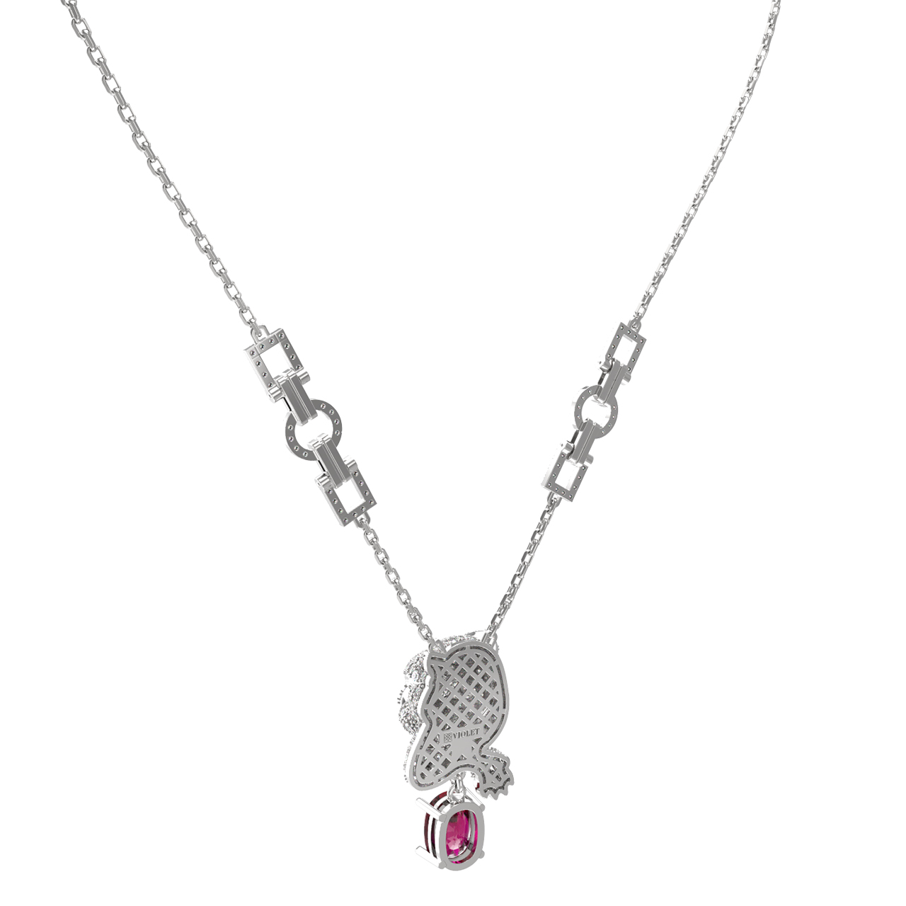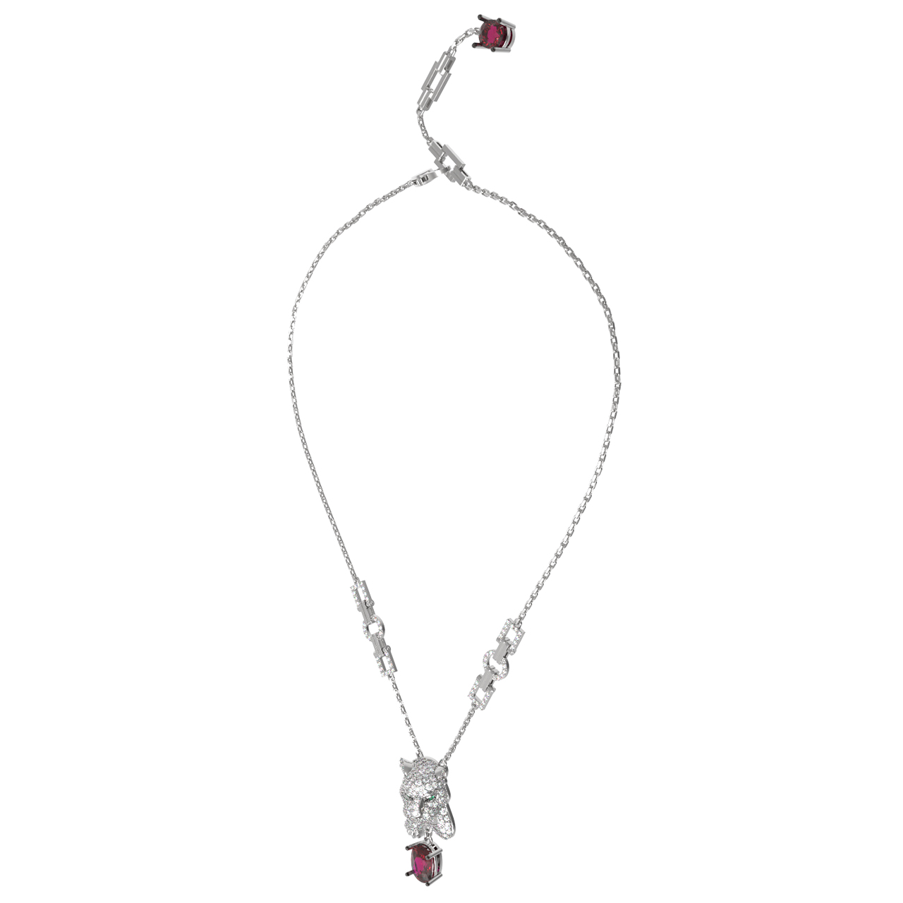 Колье из белого золота c бриллиантами, рубином и изумрудом