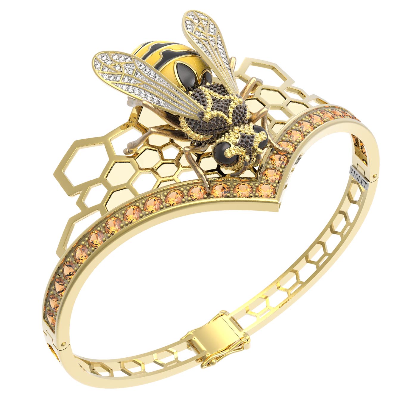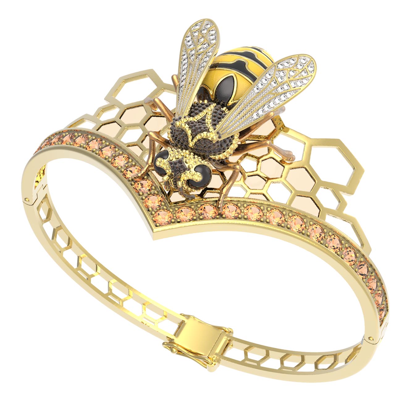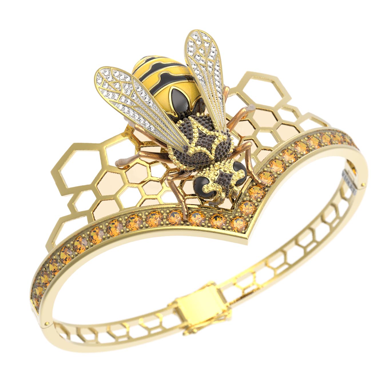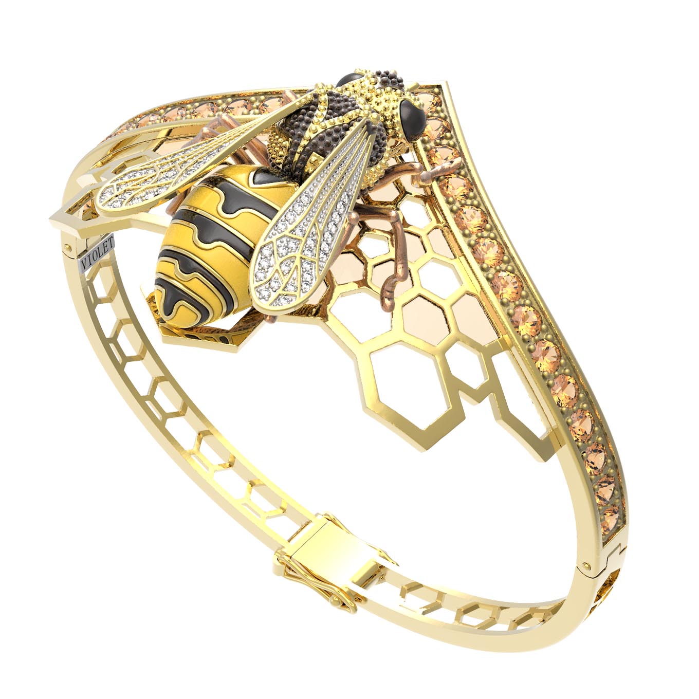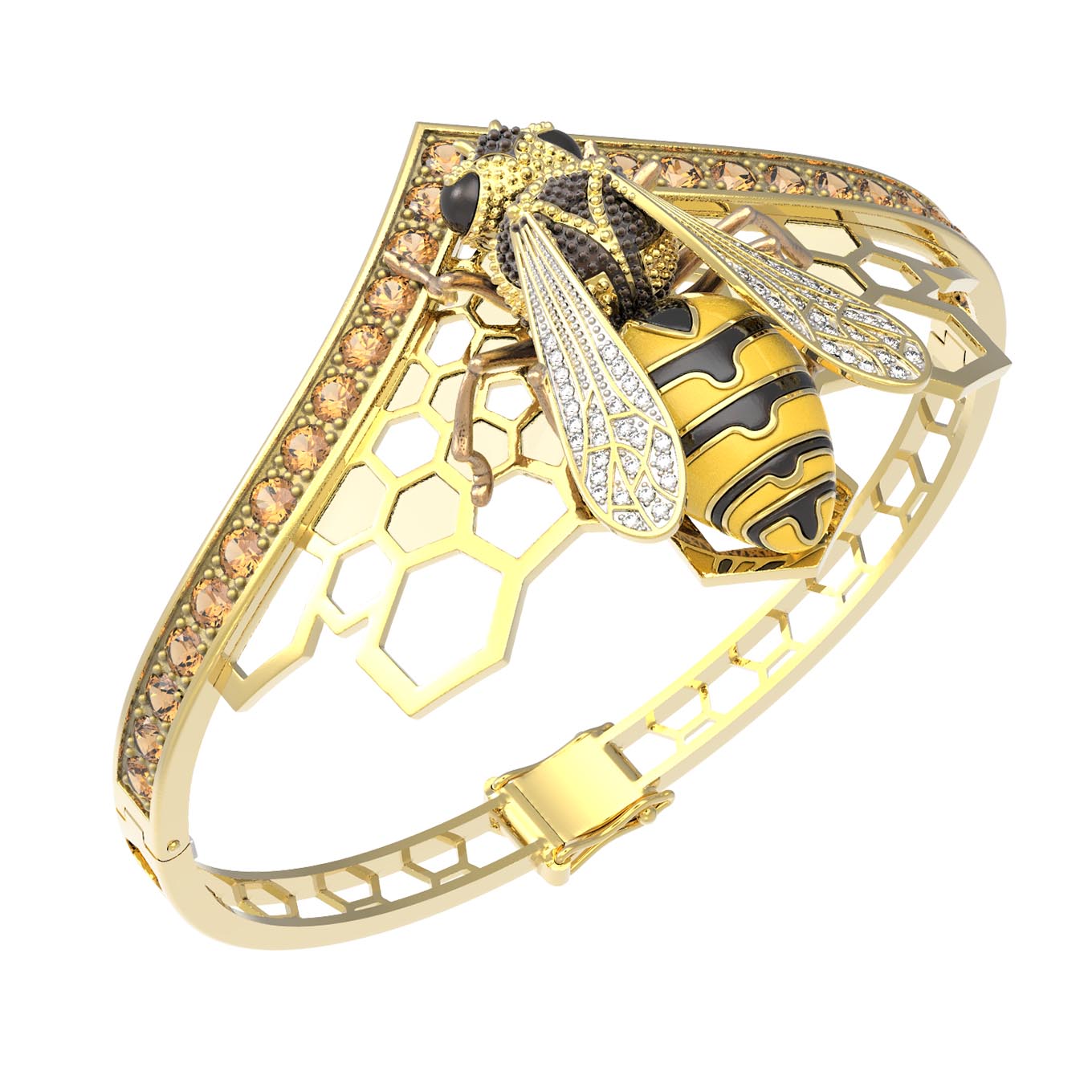 Браслет из лимонного золота c эмалью, фианитом, цитрином и эмалью