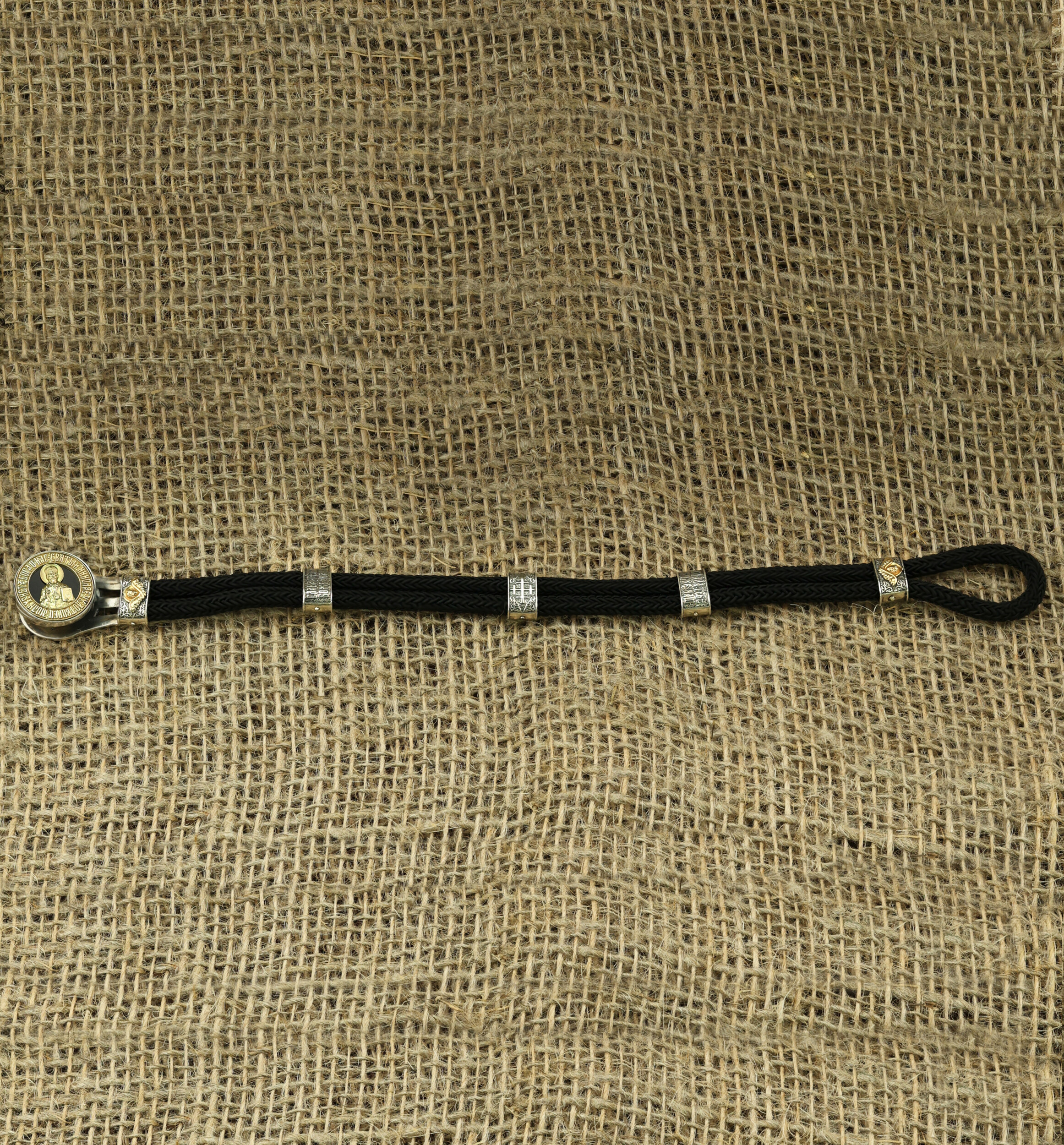 Браслет из серебра и золота c ониксом и шёлковым шнурком