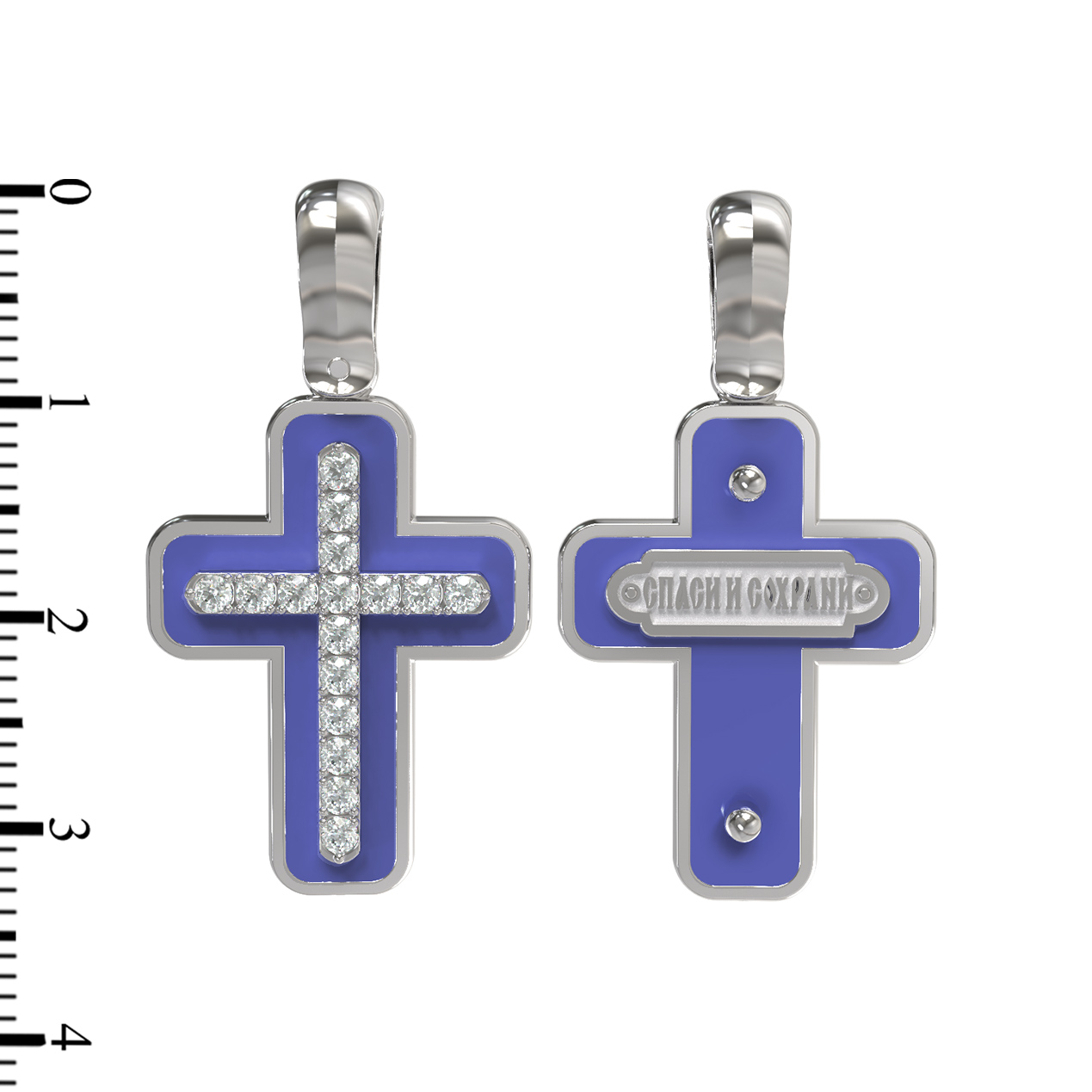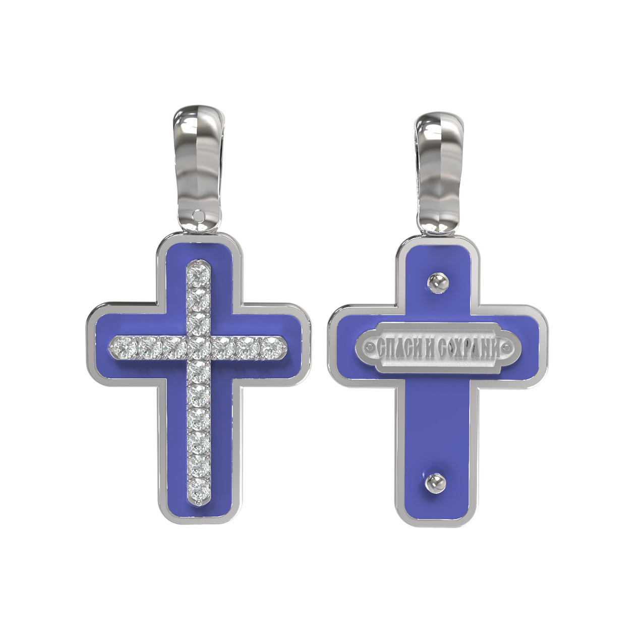 Крест из белого золота c эмалью и бриллиантами