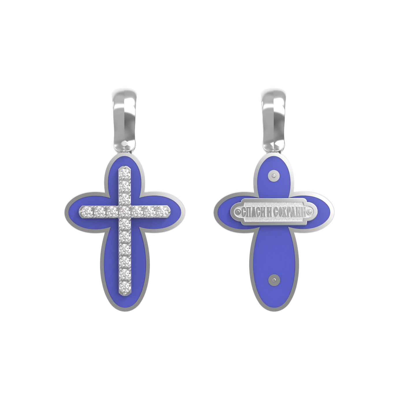 Крест из белого золота c эмалью и бриллиантами