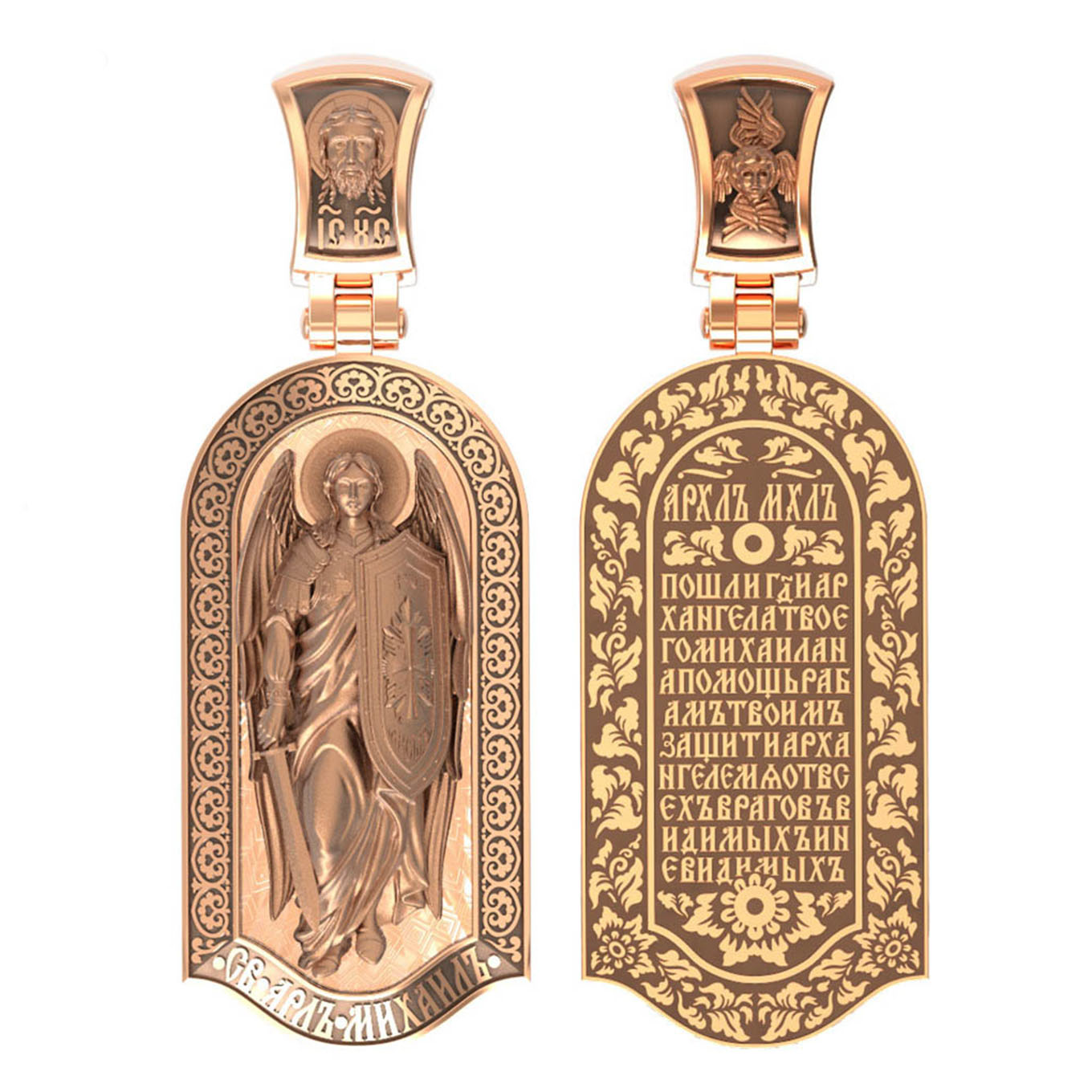 Основой композиции лицевой стороны является ростовое изображение Архангела Михаила — Архистратига всех Небесных Воинств. Он ведет непримиримую войну против сил зла, охраняет райские врата и защищает души людей. Его имя означает «Кто яко Бог?», так как он самый могучий и грозный враг зла. Он первым ополчился на Денницу, когда тот восстал против Бога, низверг его с Неба и не перестает сражаться с его темным воинством. Поэтому он часто изображается в виде воина, в доспехах и с огненным мечом. Но как служитель Небесного Царя и глава Ангелов и Архангелов на многих иконах он предстает в богатой одежде византийских придворных.