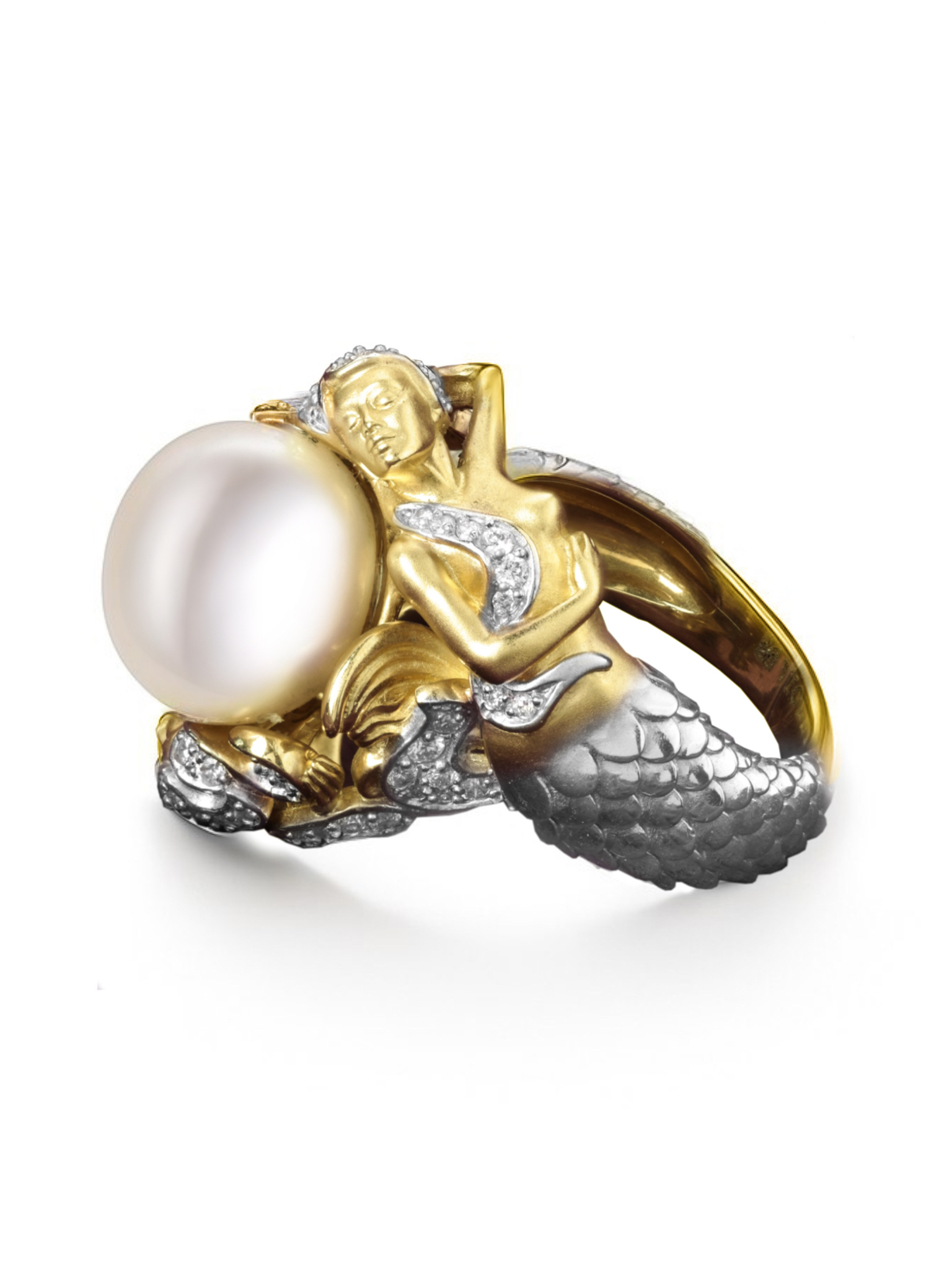 Кольцо из лимонного золота c бриллиантами и жемчугом