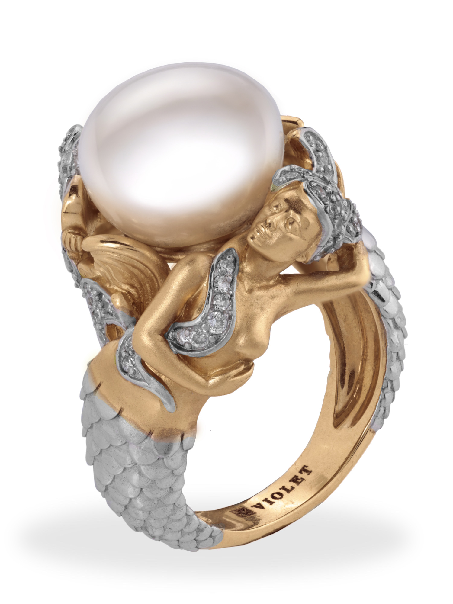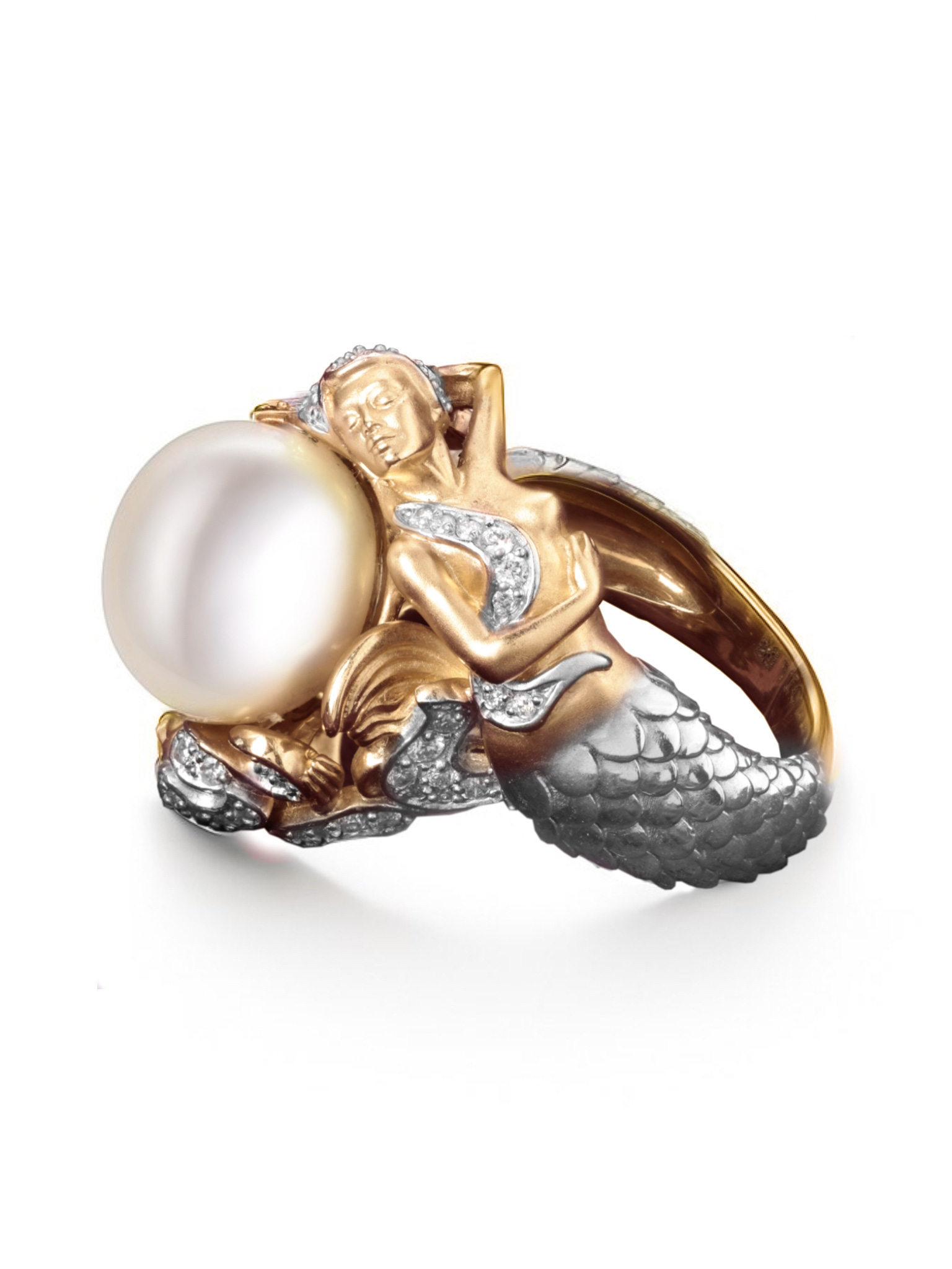 Кольцо из золота c бриллиантами и жемчугом